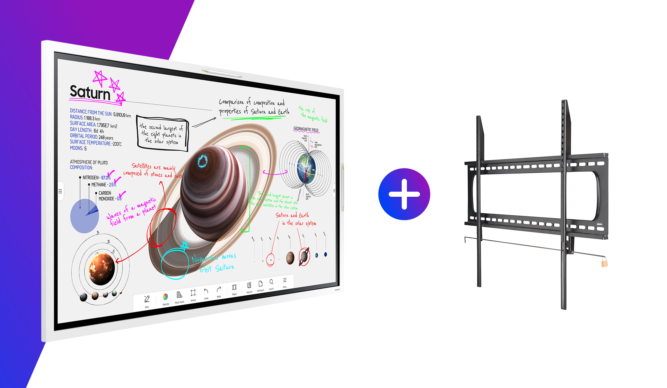 Auf Lager, sofort versandfertig Lieferzeit 1-2 WerktageSamsung Flip Pro WM85B Flipchart 215,9 cm 85 Zoll inkl. Neomounts BL55-875BL1 motorisierter Standfüßehöhenverstellbar