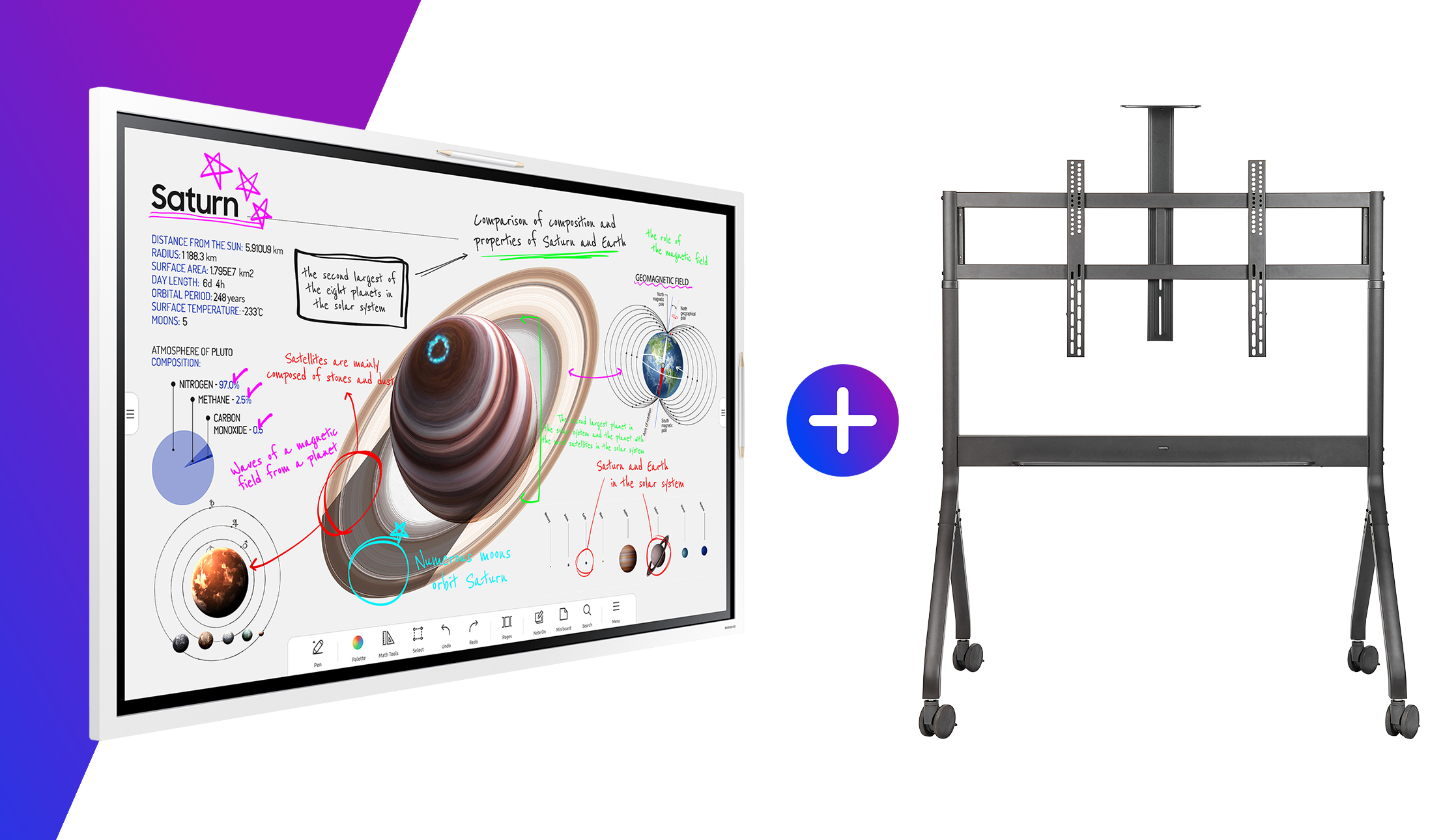 Auf Lager, sofort versandfertig Lieferzeit 1-2 WerktageSamsung Flip Pro WM85B Flipchart 215,9 cm 85 Zoll inkl. Peerless-AV SR598W Rollwagenhöhenverstellbar