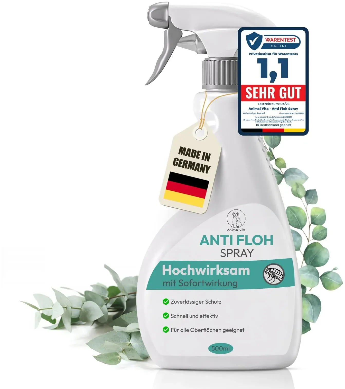 Kategorie: Tiergesundheit - rgo expert - GTIN:4260514452795 - Schnelle Wirkung: Die spezielle Formel sorgt für eine rasche Abwehr von Flöhen und verhindert deren Ausbreitung in Ihrem Zuhause. Bei allen Floh-Arten: Egal ob als Katzen-Flohmittel oder Hund-Flohmittel. Das Spray ist einsatzbar in Tierschlafplätzen, auf Textilien & Polstern. Einfache Anwendung: Dank des praktischen Sprühkopfes lässt sich das Flohspray mühelos und fleckenfrei auf Teppichen, Sofas und anderen Textilien verteilen. Treibgasfrei: Das Flohspray kommt ohne Treibgase aus und ist auf Wasserbasis. Außerdem ist das Spray auch anwendbar bei Milben & Zecken. Deutsche Qualität: Das Mittel wurde von Schädlingsexperten entwickelt und wird in Deutschland mit geprüfter Wirksamkeit hergestellt. Zusätzlich gibt es kostenfreien Kundenservice vom Schädlingsbekämpfer. So bekommst du deinen Befall wieder in den Griff. Biozidprodukte vorsichtig verwenden. Vor Gebrauch stets Etikett und Produktinformationen lesen. BAuA-Nr: N-114939 (PT19) - 19,95 Euro bei Amazon Marketplace Lawn & Garden - gefunden von billiger.de Das Animal Vita Flohspray wurde mit "SEHR GUT" getestet und ist eine hochwirksame und laborgeprüfte Alternative zu Fogger-Produkten. ![]() ![]() Animal Vita Flohspray für Wohnung und Möbel [TESTURTEIL SEHR GUT 04/25] gegen Flöhe bei Hunden und Katzen - Alternative zu Fogger gegen Flöhe - Flohmittel für Wohnung, hochwirksam & laborgeprüft
