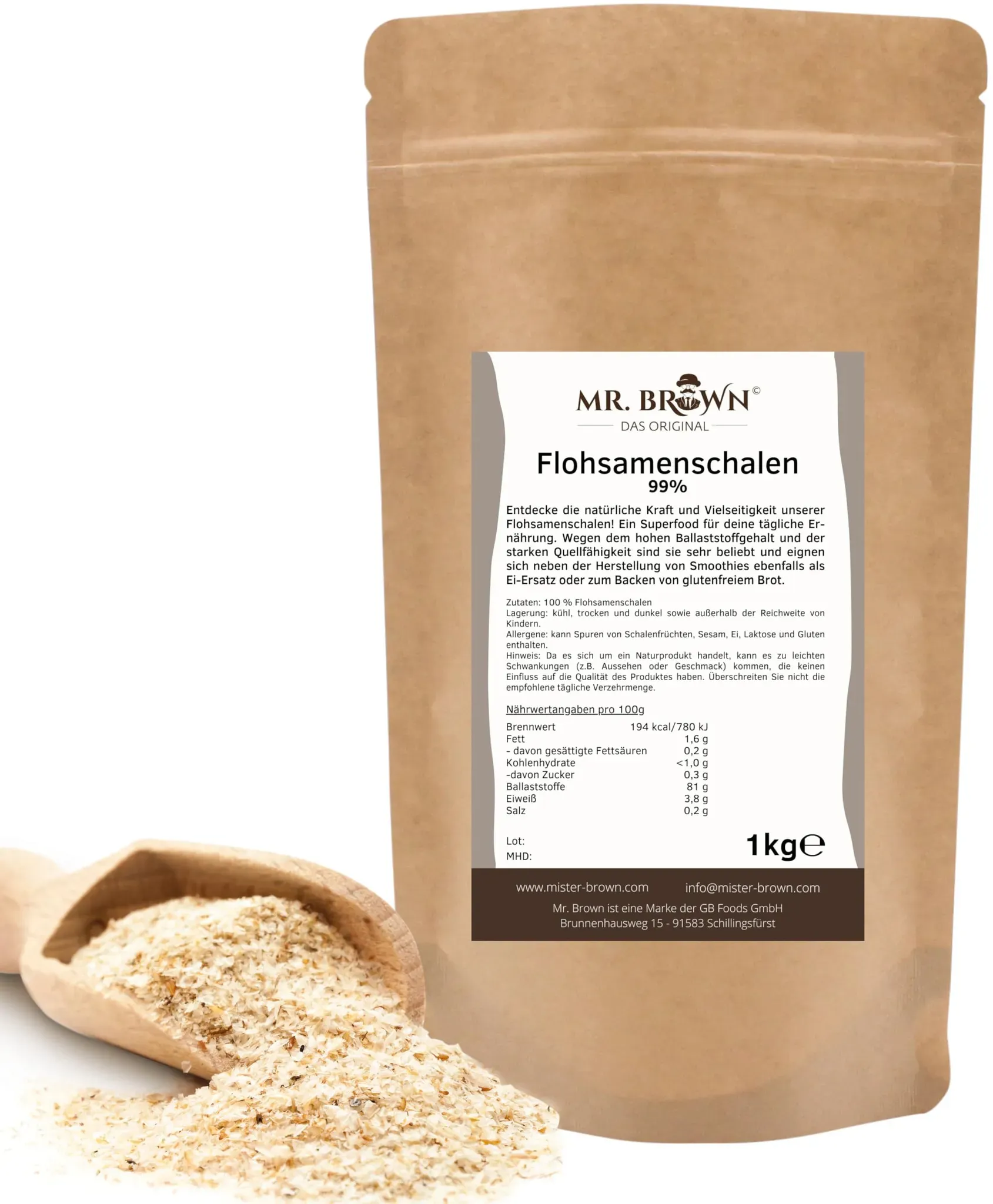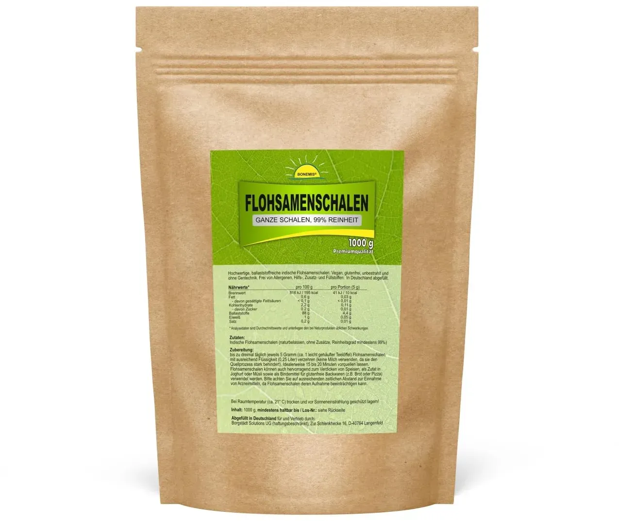 Zustand: Neu - 19,99 € / kg - Flohsamen Pflanzliches Ergänzungsmittel Flohsamen - MR. BROWN gb-foods GmbH - 55556 - - VEGAN UND VEGETARISCH🤎 Mr. Brown's gemahlene Flohsamenschalen, sind ungeschwefelt, und für die vegane und vegetarische Ernährung geeignet. OHNE ZUSATZSTOFFE🤎 und ohne Konservierungsstoffe. Die Vitaminbombe unter den Superfoods. VERZEHREMPFEHLUNG🤎 Bis zu einen ganzen Esslöffel Wasser 3-mal täglich, mit den Flohsamenschalen einnehmen. WIEDERVERSCHLIEßBARE VERPACKUNG🤎 Damit die Flohsamenschalen lange frisch bleiben, kann die Verpackung einfach wieder verschlossen werden. ABGEFÜLLT IN BAYERN🤎 Wir füllen die gemahlenen Flohsamenschalen hier in Bayern ab. Somit schonen wir nicht nur Ressourcen, sondern unterstützen dadurch die lokale Wirtschaft und haben eine letzte persönliche Endkontrolle. - Verkäufer: Mr. Brown - Das Original - inkl. MwSt. im amazon.de Marketplace 100years GmbH bietet hier Bio Flohsamenschalen mit 99% Reinheit und Bio-Qualität für 21.90 Euro, was eine gute Option für Bio-Liebhaber ist. ![]() ![]() 100years GmbH - Bio Flohsamenschalen 1000g (1 Kg) - 99% Reinheit - 100% BIO-Qualität (DE-öKO-003) - Vegan - Ballaststoffreich