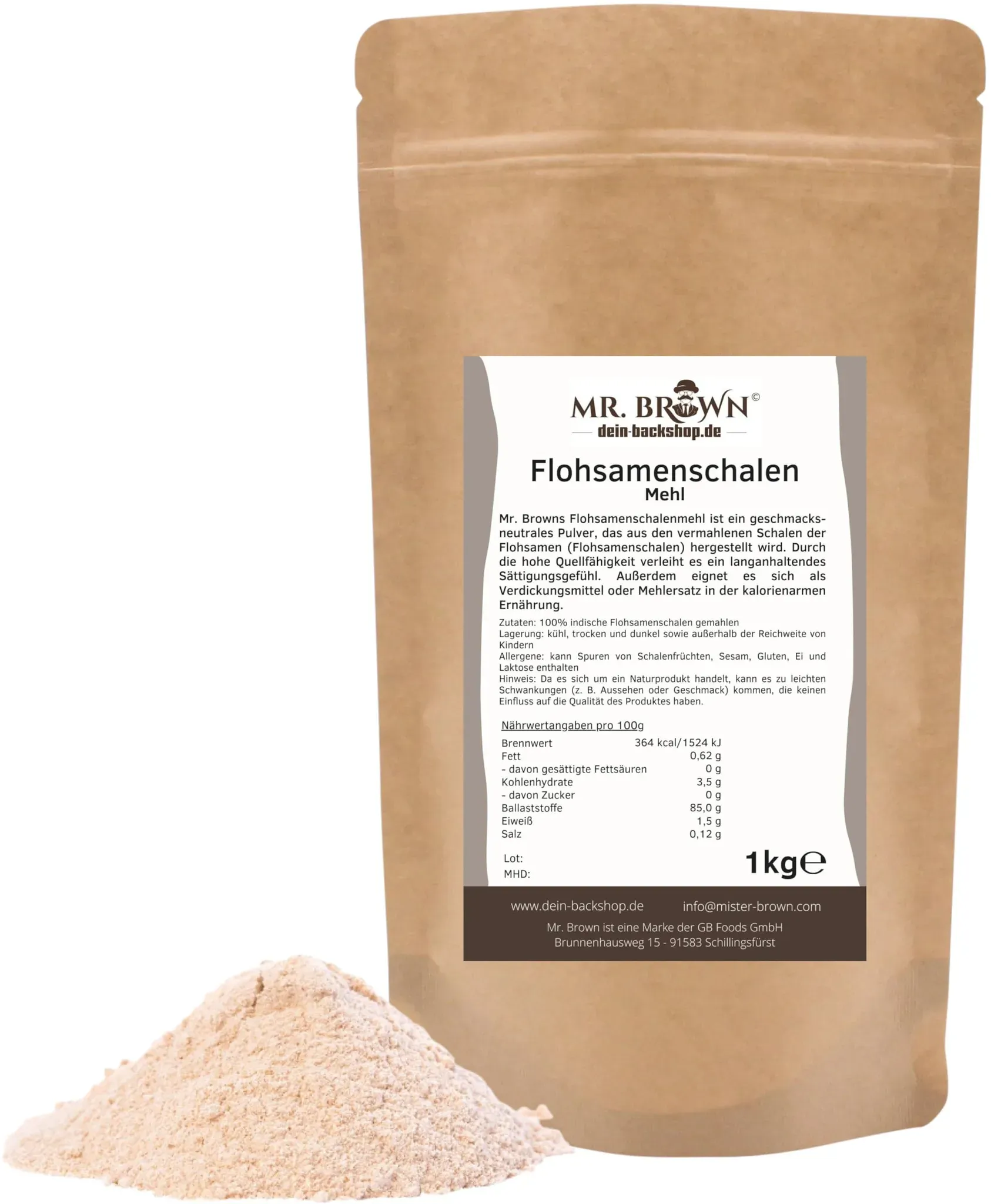 ![]() ![]() Mr. Brown 1kg Flohsamenschalen Mehl gemahlen Pulver, vegan, 99% Reinheit