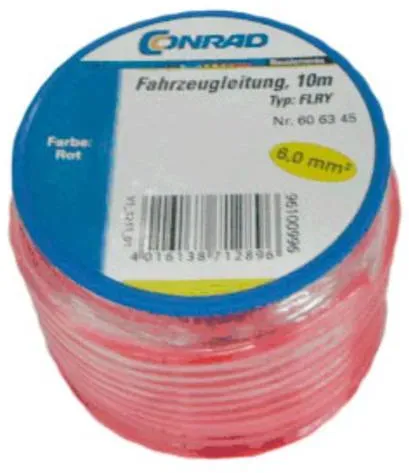Verfügbarkeit: Lieferbar ab 15.12.2025, Lieferzeit (sobald verfügbar): 1-2 Werktage - 2,80 /1m - Kategorie: Kabel & Leitungen - CONRAD COMPONENTS - GTIN:4016138712896 - 606345 Fahrzeugleitung FLRY-B 1 x 6mm2 Rot 10m - 27,99 Euro bei voelkner - gefunden von billiger.de Ein vielseitiges Sortiment mit 5 Farben und 1,5 mm Querschnitt, ideal für komplexere Verkabelungen. ![]() ![]() DCSk Fahrzeugleitung - 1,5mm2 - 10m - FLRY B asymmetrisch Sortiment 5 Farben - 1.5 mm2 - KFZ-Kabel-Litze - rot schwarz blau braun gelb - 1 5mm2