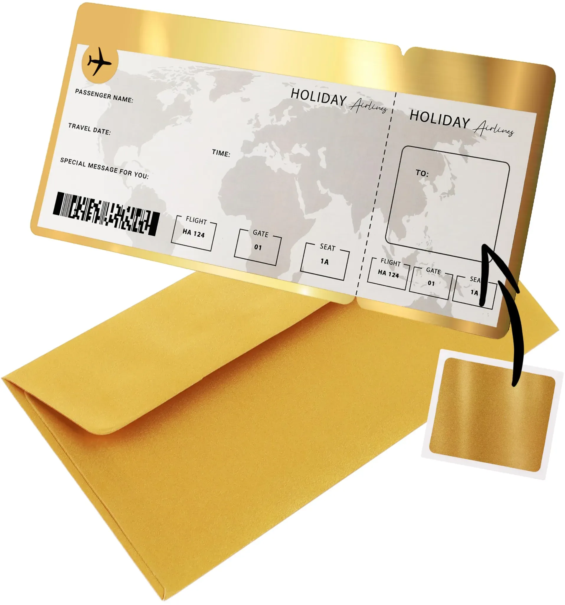 Kategorie: Basteln - Craftwerk - GTIN:0618455303319 - EINZIGARTIGE VERPACKUNG: Das goldene Flugticket bietet eine kreative Möglichkeit, Geldgeschenke oder Reisegutscheine stilvoll zu überreichen IDEAL FüR REISEFANS: Perfekt als Geschenk für Reisende und Abenteurer, die große Metropolen, wie Paris und London, oder Länder, wie Australien, erkunden möchten FLEXIBEL EINSETZBAR: Ob als Urlaubskasse, Gutschein für Disneyland, Griechenland oder Mallorca die Karte passt zu jedem Reiseziel PERSöNLICHES DESIGN: Mit der Freifläche zum individuellen Beschriften und dem Rubbelsticker erzeugen Sie einen überraschungseffekt. Ideal als Geburtstagskarte oder Reisegeschenk HOCHWERTIGE VERARBEITUNG: Das Set beinhaltet eine robuste Karte im Format 19 x 9 cm und einen passenden Umschlag für eine unvergessliche Präsentation für die Familie und Freunde - 3,99 Euro bei Amazon Marketplace Automotive - gefunden von billiger.de Eine elegante Geschenkverpackung in Schwarz-Gold mit Rubbelaufkleber, um eine Überraschungsreise stilvoll zu präsentieren. ![]() ![]() BETESSIN Reisegutschein Geschenk Verpackung Schwarz Gold - Flugticket Karte mit Rubbelaufkleber & Umschlag - Bordkarten zum Beschriften - Kreativ Reise Geschenk für überraschungsreise