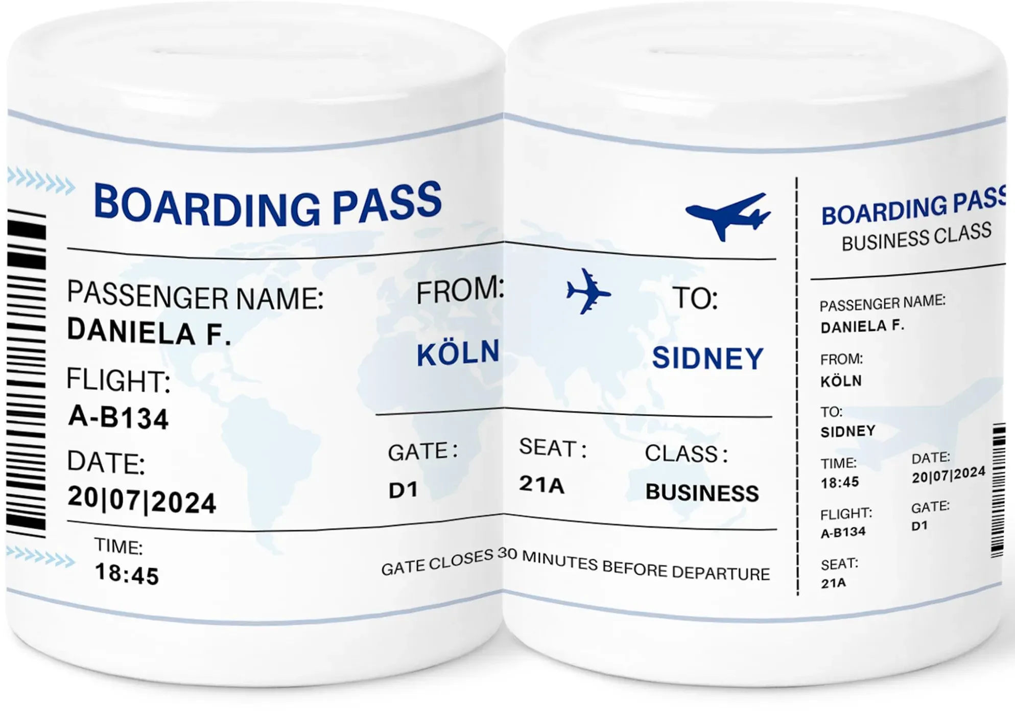 Kategorie: Spardosen - del m unique & personal - Das perfekte Geschenk - Kreatives Geldgeschenk für die nächste Reise, egal ob zum Geburtstag oder Weihnachten. Personalisiert - Wir personalisieren deine Tasse mit viel Liebe zum Detail. Das perfekte Geschenk für Familien - Egal ob als Geldgeschenk zum Geburtstag oder Weihnachten. Brillanter Druck - Kräftige, strahlende Farben und gestochen scharfer Druck Schneller & sicherer Versand - Wir verpacken deine Spardose so, dass es unbeschadet und ohne Kratzer in kurzer Zeit bei dir ankommt. Das DEL M Plus - Profitiere von unserem schnellen, lösungsorientierten & freundlichen Kundenservice. Deine Zufriedenheit steht bei uns an erster Stelle. - 14,90 Euro bei Amazon Marketplace Home - gefunden von billiger.de Ein T-Shirt mit einem Bordkarten-Design für Palma de Mallorca, ideal für Reisebegeisterte. ![]() ![]()