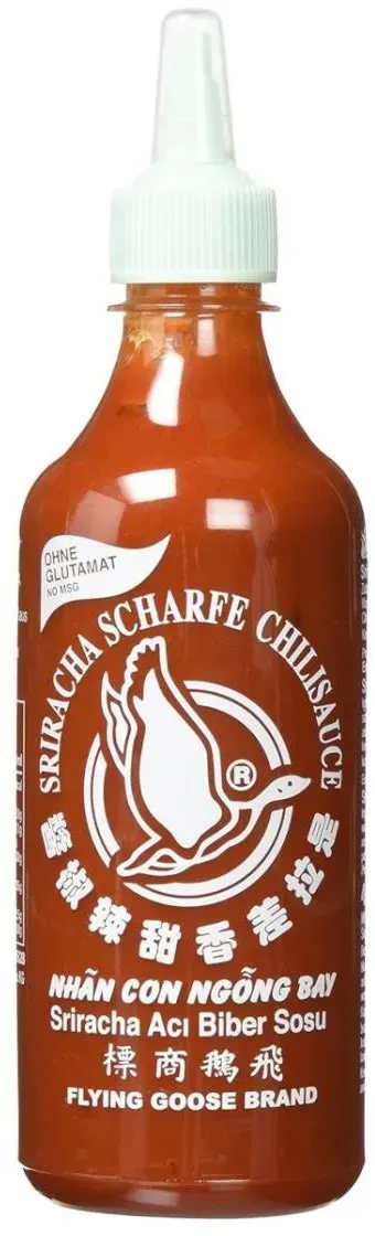 3 Händlerangebote bei billiger.de - Kategorie: Würzsaucen - FlyingGoose - THAILäNDISCHE TRADITION | Die beliebte Würzsauce kreiert in der thailändischen Küstenstadt Si Racha - Flying Goose Sriracha Mayoo Sauce aus sonnengereiften Chilischoten, leicht scharfe Mayonnaise AROMATISCH | Für alle die es würzig lieben, die cremige Mayonnaise überzeugt mit einer einzigartigen Kombination aus leichter Schärfe und frischer Mayo EIN ECHTER KLASSIKER | Die pikante Sriracha Mayonnaise der weltbekannten Flying Goose Brand macht jedes Gericht zu einem besonders würzigen Geschmackserlebnis - ideal zum Würzen, Dippen oder Marinieren VIELSEITIG | Die köstliche Chilicreme schmeckt hervorragend zu zahlreichen Gerichten, probieren Sie die vielseitige Würzsoße und verfeinern Sie schnell und einfach Pommes, Hamburger und Grillfleisch FLYING GOOSE-QUALITäT |Die weltweit bekannte Sriracha-Marke trifft seit 1999 den Nerv der Schärfe-liebenden Menschen. Entdecke auch du eine Vielzahl klassischen Würzsaucen oder experimentellen Neuerungen - GTIN:8853662056654 Diese Sriracha-Sauce ohne MSG ist eine gute Option für bewusste Genießer. ![]() ![]() Flying Goose Sriracha no MSG 455ml