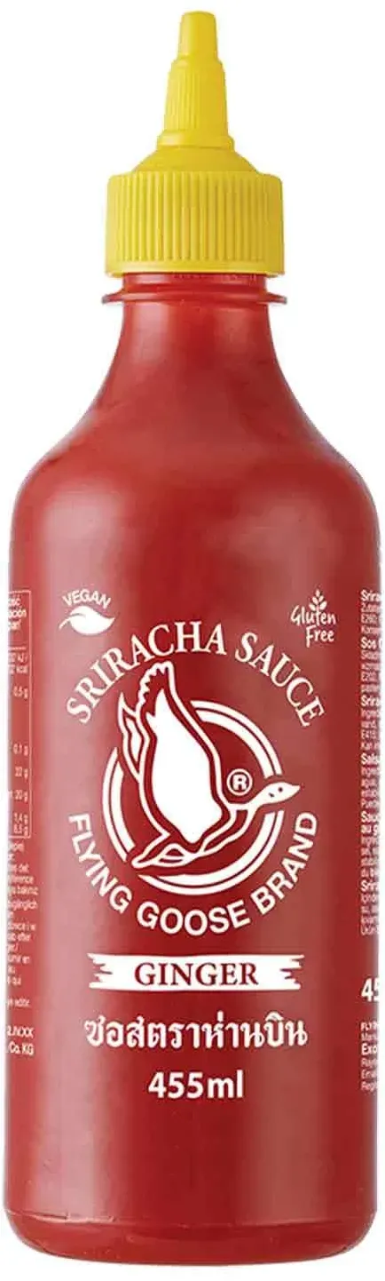 2 Händlerangebote bei billiger.de - Kategorie: Würzsaucen - Flying Goose - THAILäNDISCHE TRADITION | Die beliebte Würzsauce kreiert in der thailändischen Küstenstadt Si Racha - Flying Goose Sriracha scharfe Chilisauce aus sonnengereiften Chilischoten, mit Ingwer AROMATISCH | Ideal für Ingwerfans, die scharfe Sriracha Sauce mit extra Ingwer überzeugt mit einer harmonischen Kombination aus feuriger Schärfe und aromatischem Ingwer EIN ECHTER KLASSIKER | Der Klassiker aus dem Asia Restaurant und Imbiss verleiht jedem Gericht eine extra scharfe Note - ideal zum Würzen, Dippen oder Marinieren VIELSEITIG | Verfeinern Sie im Handumdrehen Pizza, Pasta, Burger, Fisch, Fleisch und viele weitere Mahlzeiten mit der köstlichen Sriracha Chilisauce der Flying Goose Brand FLYING GOOSE-QUALITäT |Die weltweit bekannte Sriracha-Marke trifft seit 1999 den Nerv der Schärfe-liebenden Menschen. Entdecke auch du eine Vielzahl klassischen Würzsaucen oder experimentellen Neuerungen - GTIN:8853662056180 Die Sriracha mit Zitronengras bietet eine frische, aromatische Note, die gut zu asiatischen Gerichten passt. ![]() ![]() Flying Goose Sriracha Chilisauce, mit Zitronengras, scharf, hellgrüne Kappe, scharfe Würzsauce aus Thailand, 1 x 455 ml