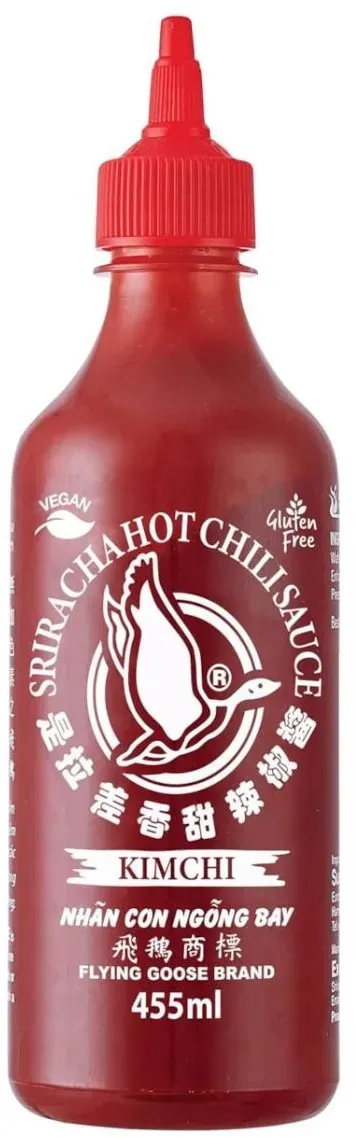 9.05 / 1liter - Kategorie: Würzsaucen - Flying Goose - GTIN:8853662056067 - Durchschnittliche Nährwertangaben pro 100 mlEnergie (kJ) 704.00 kJEnergie (kcal) 168.26 kcalFett 1.7 Grammdavon:- Gesättigte Fettsäuren 0.3 GrammKohlenhydrate 34.0 Grammdavon:- Zucker 27.0 GrammEiweiß 1.8 GrammSalz 8.7 Gramm Zutaten:Chilli 70 Prozent, Zucker, Wasser, Salz, Säuerungsmittel: Essigsäure (E260), Citronensäure (E330);Verdickungsmittel: Xanthan (E415); Geschmacksverstärker: Mononatriumglutamat (E621);Konservierungsstoff: Kaliumsorbat (E202)Allergie-Informationen: Ohne Erdnüsse, Ohne Milch oder Milchprodukte, Glutenfrei, Ohne Fisch, Ohne Eier Importeur:Kreyenhop Kluge GmbH Co. KG Lebensmittelimport Industriestr. 40-42 28876 Oyten / GermanyHerkunft: Thailand - 4,12 Euro bei burgen-stern.shop - gefunden von billiger.de Die Kimchi-Variante der Sriracha bietet eine einzigartige, fermentierte Geschmacksnote. ![]() ![]() Flying Goose Sriracha Chilisauce - Kimchi 455ml