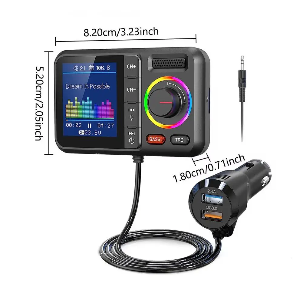 Kategorie: FM-Transmitter - duobagma - GTIN:0768622983476 - Klein und exquisit, einfach zu bedienen. Bunte Atmosphärenlichter machen das Fahren romantischer. Kompatibel mit Bluetooth, U-Disk (bis zu 32G) Audioverbindung. Unterstützung Power-Out-Speicher-Wiedergabefunktion. Hochauflösende, leistungsstarke Stereo, verlustlose Musikwiedergabe. Bluetooth-Version 5.3 unterstützt Bluetooth-Audiowiedergabe und Bluetooth-Handsfree-Anrufe. 15W Laden, Laden während Sie Lieder hören. Die Sprachnavigation-Funktion unterstützt 99% der Kartenanwendungen. Vollfrequenz-FM-drahtlose übertragungstechnologie, die Audiodateien direkt auf Bluetooth-Handys/U-Festplatten. Mehrere Schutze wie überstrom, überladung, übertemperatur, überspannung, Kurzschlussschutz und Verbrennungsschutz machen es sicherer zu verwenden. Es ist für alle Autos, SUVs und LKWs mit einer Spannung von 12V-24V geeignet. - 11,98 Euro bei Amazon Marketplace CE - gefunden von billiger.de Ein vielseitiger FM-Transmitter mit Bluetooth 5.0, Freisprecheinrichtung, Audio-MP3-Player und schnellen Ladeoptionen (Typ-C PD 20W + QC3.0). ![]() LENCENT FM-Transmitter, kabellos, Bluetooth 5.0, Freisprecheinrichtung, Audio-MP3-Player mit Typ-C PD, 20 W + QC3.0, schneller USB-FM-Modulator