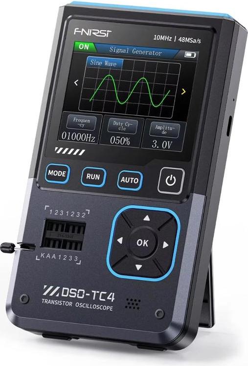 EAN: 0610655677047 - Das FNIRSI DSO-TC4 ist ein vielseitiges Instrument, das Ihre Arbeit vereinfacht unddie Effizienz bei Diagnose, Entwicklung und Reparatur erhöht. Ideal für Elektroingenieure, Heimwerker, Studenten und Profis, die einen zuverlässigen Partner in der Tasche haben wollen. Dieses Gerät vereint drei Instrumente in einem kompakten Paket Oszilloskop, Tester für Halbleiterkom ponenten und Signalgenerator. Dieser multifunktionale Helfer ist für schnelle Messungen, Fehlersuche und Tests konzipiert, egal ob Sie im Labor, in der Werkstatt oder im Feld arbeiten. Dank seines integrierten Akkus(1500 mAh) und seines geringen Gewichts ist er leicht zu transportieren und immer zur Hand, wenn Sie ihn brauchen.Präzise Messungen und eine breite Palette von PrüfmöglichkeitenMit einer realistischen Abtastrate von 48 MSa/s und einer analogen Bandbreite von 10 MHz kann das DSO-TC4 auch schnelle Signale zuverlässig erfassen. Das Gerät bietet eine automatische Bauteilidenti fikation, einschließlich Transistoren, Dioden, FETs oder Thyristoren, und erkennt deren Pins ohne langwierige Einstellungen.Kundenspezifischer SignalgeneratorDas Gerät verfügt über einen Generator mit einem Ausgangssignal von bis zu 50 kHz und der Möglichkeit, Frequenz, Amplitude (0 3 V) und Signalwechsel einzustellen, was es zu einem idealen Werkzeug für Schaltungsprüfun gen, Prototyping und Unterricht macht.Kompakt, aber kompromisslosDas 2,8-Zoll-TFT-Farbdisplay zeigt Signale klar und deutlich an, während die ... Dieses Angebot von berrybase.de hebt die 3-in-1 Funktionalität und das 2,8 Zoll Display hervor, was für viele Anwender relevant ist. ![]() FNIRSI DSO-TC4 3-in-1 Portables Oszilloskop, Bauteiltester, Signalgenerator, 2,8 Display, 10 MHz