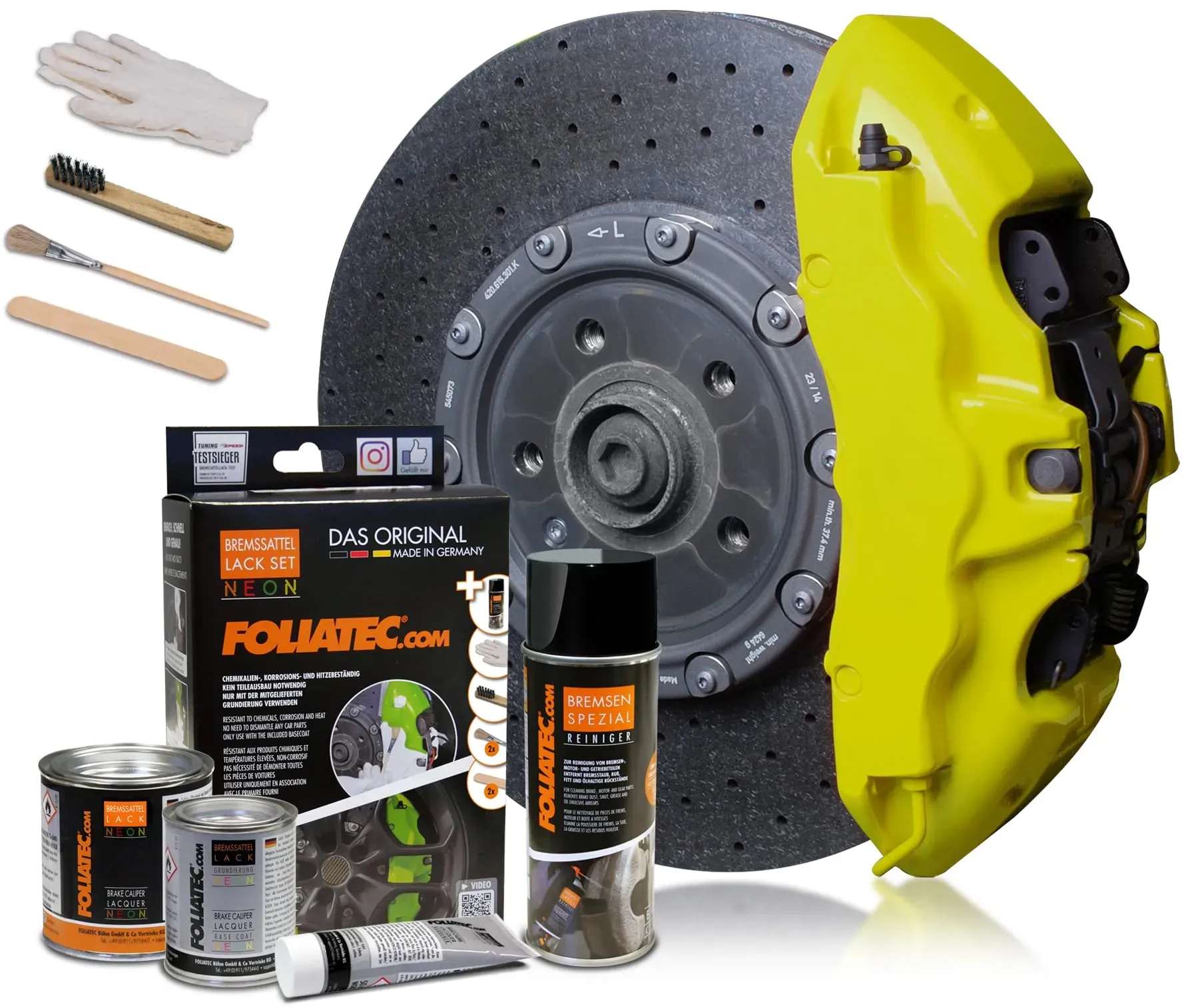 Kategorie: öle & Schmierstoffe - FoliaTec - GTIN:4002581021845 - 10-teiliges Bremssattel Lack Set Hitze-, chemikalien-, korrosions- und ölbeständig Einfaches und genaues Auftragen mit dem Pinsel Kein Teileausbau notwendig Ausreichend für 4 Bremssättel Made in Germany Farbe: Neon Gelb - 30,07 Euro bei Amazon Marketplace Automotive - gefunden von billiger.de ![]() Foliatec Bremssattel Lack Set Performance Yellow Bremssattellack 2195