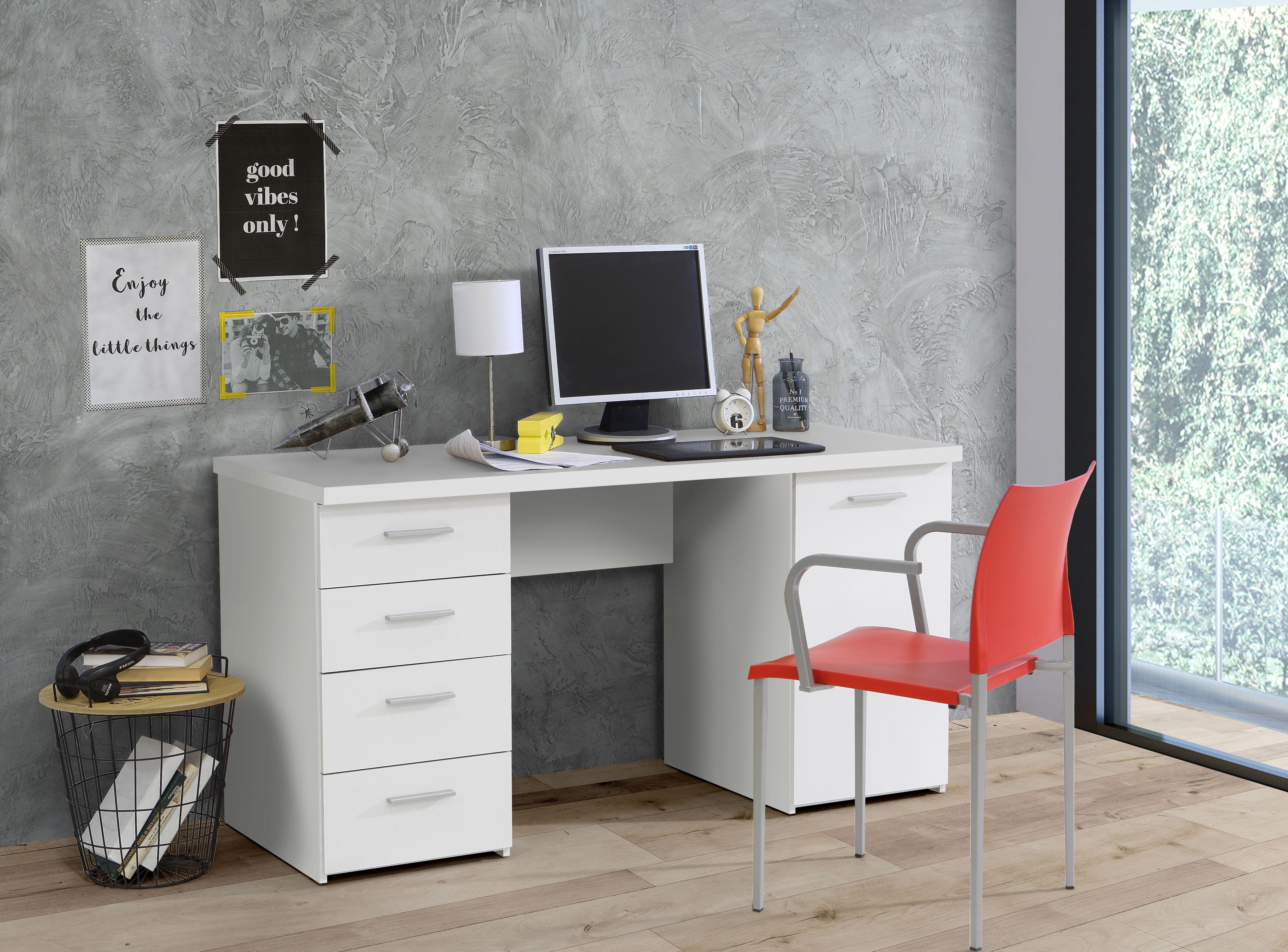 keine Angabe (Amazon Prime) Auf Lager Versand durch AmazonFORTE Net 106 Schreibtisch mit 4 Schubladen, Holzwerkstoff, Weiß matt, B x H x T: 110 x 76.5 x 60 cm