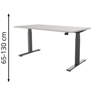 fm-Büromöbel - EAN: 4260761572291 - . Schnelles zusammenklappen durch lösen von 4 Schrauben . Kollisionsschutz verhindert das Einklemmen von Gegenständen . Elektroantrieb mit einem Motore . 3-stufig mit einer Hubgeschwindigkeit: 6 cm/Sek. . Strapazierfähige, melaminharzbeschichtete E1-Qualitäts-Spanplatte . Hochwertige 2 mm starke und abgerundete ABS-Kanten . Made in Germany Merkmale: Farbe: königsahorn Ausführung: elektrisch höhenverstellbar Breite: 160 cm Tischform: Rechteck Gestellform: T-Fuß weitere Produktinformationen: Bodenausgleich: Höhenjustierung um + / - 5 mm Gestellfarbe: anthrazit Metallic Maße: (BxHxT) 160 x 65-130 x 80 cm Besonderheit: elektrisch höhenverstellbar Lieferung: vormontiert, Gestell wird aufgeklappt Lieferung direkt ab Werk frei Parterre! ACHTUNG: Speditionsversand! Treppentransport und Montage auf Anfrage möglich! - bei bueromarkt-ag.de - aus Yadore Produktdaten In Grau ist dieser Schreibtisch eine beliebte Wahl für eine größere Arbeitsfläche mit elektrischer Höhenverstellung. ![]() ![]() fm-Büromöbel Schreibtisch fouraction grau, elektrisch höhenverstellbar, 160 x 65-130 x 80cm