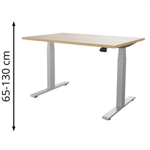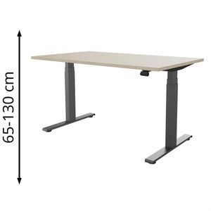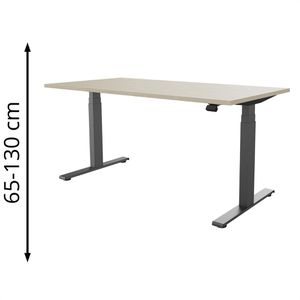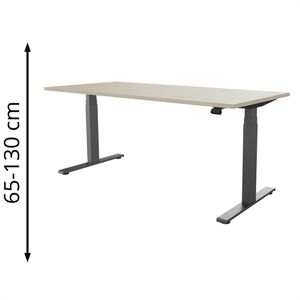 fm-Büromöbel - EAN: 4260761572130 - . Schnelles zusammenklappen durch lösen von 4 Schrauben . Kollisionsschutz verhindert das Einklemmen von Gegenständen . Elektroantrieb mit einem Motore . 3-stufig mit einer Hubgeschwindigkeit: 6 cm/Sek. . Strapazierfähige, melaminharzbeschichtete E1-Qualitäts-Spanplatte . Hochwertige 2 mm starke und abgerundete ABS-Kanten . Made in Germany Merkmale: Farbe: lichtgrau Ausführung: elektrisch höhenverstellbar Breite: 160 cm Tischform: Rechteck Gestellform: T-Fuß weitere Produktinformationen: Bodenausgleich: Höhenjustierung um + / - 5 mm Gestellfarbe: anthrazit Metallic Maße: (BxHxT) 160 x 65-130 x 80 cm Besonderheit: elektrisch höhenverstellbar Lieferung: vormontiert, Gestell wird aufgeklappt Lieferung direkt ab Werk frei Parterre! ACHTUNG: Speditionsversand! Treppentransport und Montage auf Anfrage möglich! - bei bueromarkt-ag.de - aus Yadore Produktdaten Dieser Ahorn-Schreibtisch ist die größte verfügbare Option und bietet maximalen Platz für Ihre Arbeitsbedürfnisse. ![]() ![]() fm-Büromöbel Schreibtisch fouraction ahorn, elektrisch höhenverstellbar, 180 x 65-130 x 80cm
