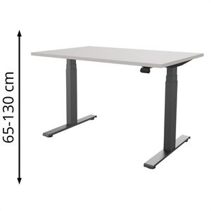 fm-Büromöbel - EAN: 4260761572116 - . Kollisionsschutz verhindert das Einklemmen von Gegenständen . Elektroantrieb mit einem Motore . 3-stufig mit einer Hubgeschwindigkeit: 6 cm/Sek. . Strapazierfähige, melaminharzbeschichtete E1-Qualitäts-Spanplatte . Hochwertige 2 mm starke und abgerundete ABS-Kanten . Made in Germany Merkmale: Farbe: lichtgrau Ausführung: elektrisch höhenverstellbar Breite: 120 cm Tischform: Rechteck Gestellform: T-Fuß weitere Produktinformationen: Bodenausgleich: Höhenjustierung um + / - 5 mm Gestellfarbe: anthrazit Metallic Maße: (BxHxT) 120 x 65-130 x 80 cm Besonderheit: elektrisch höhenverstellbar Lieferung: vormontiert, Gestell wird aufgeklappt Lieferung direkt ab Werk frei Parterre! ACHTUNG: Speditionsversand! Treppentransport und Montage auf Anfrage möglich! - bei bueromarkt-ag.de - aus Yadore Produktdaten Dieser Schreibtisch in Grau bietet eine gängige Größe und ist eine solide Wahl für ein elektrisch höhenverstellbares Modell. ![]() ![]() fm-Büromöbel Schreibtisch fouraction grau, elektrisch höhenverstellbar, 140 x 65-130 x 80cm