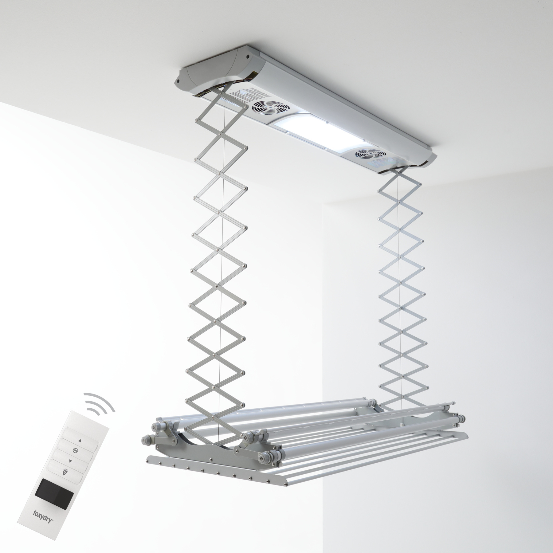 Foxydry air META PreisvergleichMit dem Meta-Preisvergleich suchen Sie gleichzeitig bei den großen Preisvergleich Portalen!Jetzt live Suche nach foxydry air starten! Foxydry air KaufberatungFoxydry Air ist ein elektrischer, ferngesteuerter Wäscheständer für Decke oder Wand aus Aluminium und Edelstahl, der platzsparend bis zu 35 kg Wäsche (ca. 3 Maschinenladungen) trocknet und mit zwei Ventilatoren den Luftstrom fördert.[1][2][3] Wichtige KaufüberlegungenBeachten Sie folgende Punkte für eine sichere und passende Nutzung: