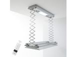 EAN: 8068020396925 - Der innovative Wäscheständer für die Decke mit Fernbedienung, auf den Sie nie wieder verzichten wollen!Der Foxydry Air ist mit zwei Luftzirkulationsventilatoren ausgestattet, die helfen, einen konstanten Luftstrom aufrechtzuerhalten und so das Trocknen der Kleidung zu erleichtern.Er lässt sich bequem mit einer Fernbedienung steuern, sodass Sie den Wäscheständer bis zu 180 cm von der Decke absenken und in jeder gewünschten Höhe stoppen können, was Ihre Waschtage einfacher und effizienter macht.Mit einer maximalen Tragkraft von 35 kg, was mehr als drei vollen Waschmaschinenladungen entspricht, bietet er ausreichend Platz für all Ihre Wäschebedürfnisse.Zwei Doppelstangen können manuell auf jeweils 40 cm ausgezogen werden, sodass Sie selbst entscheiden können, wie weit Sie sie ausziehen möchten. Diese Flexibilität ist ideal zum Aufhängen großer Gegenstände wie Bettlaken, Jacken, Tischdecken und Decken.ABMESSUNGEN:Volumen: B 160 X T 57 X H 30 cmMaximale Rahmenlänge für Bettlaken: 240 cmGesamtlänge zum Aufhängen der Wäsche: 20 mAbsenkweg von der Decke: 180 cmVERBRAUCH:Belüftungssystem: 44 WBeleuchtung: 12 WHub: 130 WSTäRKEN DER FOXYDRY AIR WäSCHESPINNEDie integrierte LED-Lampe mit niedrigem Energieverbrauch bietet eine effektive Beleuchtung für Ihren Wäscheraum und spart gleichzeitig Energie.Die Installation ist vergleichbar mit der einer Deckenleuchte, und Sie können die LED-Lampe des Foxydry Air verwenden, um den Raum zu beleuchten. Es wird mit klaren und ... ![]() ![]() Foxydry Air, Elektrischer Wäscheständer für Wand und Decke mit Ventilator und Fernbedienung, aus Aluminium und Stahl (160 cm)