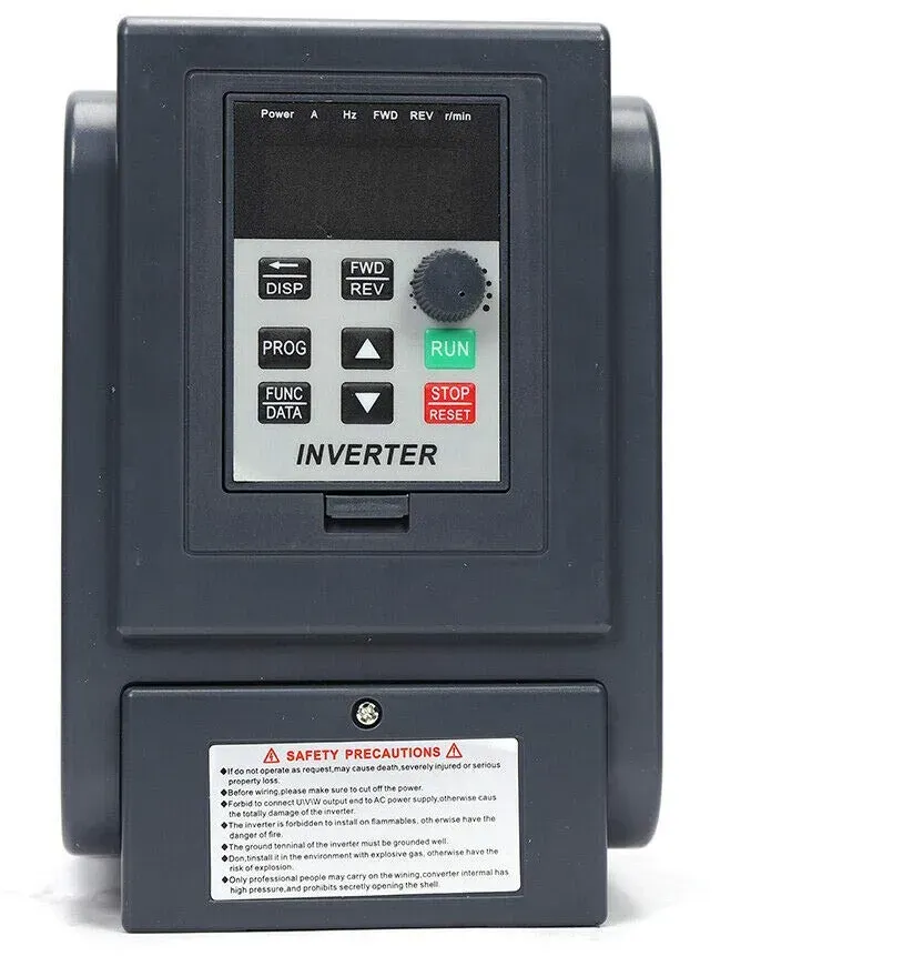 Zustand: Gebraucht - Frequenzwandler - VEVOR - BPQ15000G420220VGY7 variateur de fréquence7,5 - EAN: 0197988555452 - Wichtige Parameter: Leistung: 1,5 kW, Pferdestärke: 2 PS, Eingangsstrom: 7,5 A. Eingangsphase: einphasig 220 V oder dreiphasig 220 V; Ausgangsphase: dreiphasig 220 V. Eingangsfrequenz: 40-60 Hz; Ausgangsfrequenz: 0-400 Hz. Intuitive Anzeige und Tasten: Unser Frequenzumrichter (VFD) verfügt über eine intuitive Anzeige und benutzerfreundliche Tasten, sodass Benutzer schnell loslegen können. Das abnehmbare Bedienfeld kann zur Fernsteuerung an die entsprechende Schnittstelle angeschlossen werden, was zusätzlichen Komfort und Flexibilität bietet. Sicherheit und Haltbarkeit neu definiert: Der VFD zeichnet sich durch ein umfassendes Schutzsystem aus, das vor Überstrom, Überlastung, Überspannung, Phasenverlust und mehr schützt. Diese Funktionen priorisieren Ihre Sicherheit und erhöhen die Langlebigkeit des VFD. Mit seinem mehrseitigen und mehrlochigen Design sorgt es bei längerem Gebrauch für eine schnelle Abkühlung. Meister der Vielseitigkeit: Unser VFD ist ideal für den Antrieb von Dreiphasenmotoren in verschiedenen Maschinen, darunter CNC-Fräsen, CNC-Maschinen, Fräsmaschinen, Bohrmaschinen, Kompressoren, Pumpen, Schleifmaschinen, Aufzüge, Zentrifugen und andere Maschinen mit Drehzahlregelung. Wählen Sie für höhere Motorlasten für optimale Ergebnisse einen VFD mit höherer Leistung. Freundliche Erinnerung: Die Motorleistung sollte die des Frequenzumrichters nicht ... Mit 68.99 Euro ist dieser 750W Frequenzumrichter eine gute Wahl für die Drehzahlregelung kleinerer Elektromotoren. ![]() ![]() estabeter 750W VFD Frequenzumrichter, AC 220V Einphasiger Mini Motor Frequenzumrichter Drehzahlregler für Elektromotoren