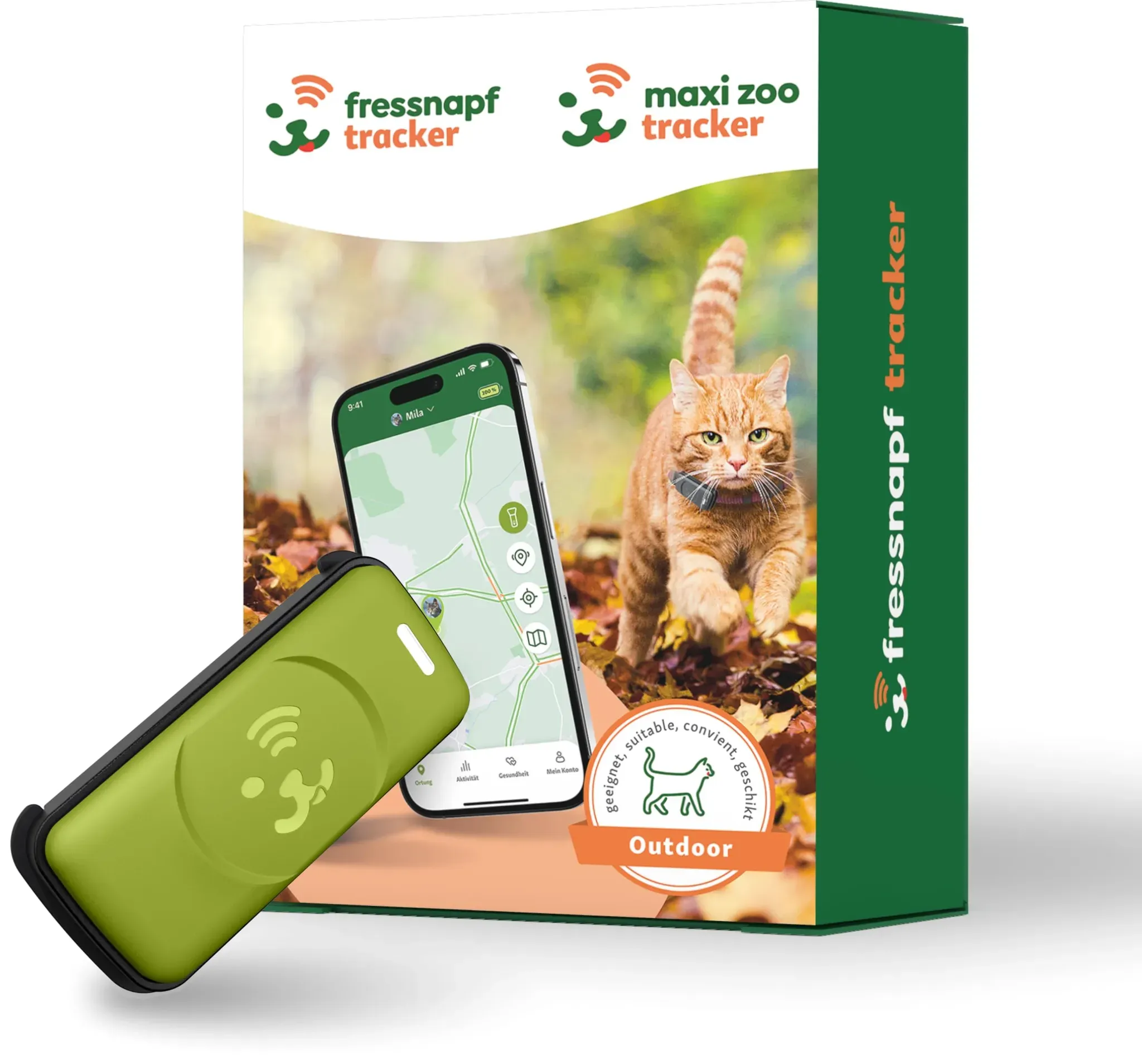 Fressnapf - EAN: 4047777246084 - Mit dem Fressnapf GPS-Tracker für Katzen wissen Sie genau, wo Ihr Liebling gerade ist. 60% der Katzenbesitzer haben ihre Katze bereits einmal vermisst. Mit dem Fressnapf GPS-Tracker für Katzen müssen Sie sich nicht mehr um die Sicherheit Ihres Lieblings sorgen. Denn ab jetzt können Sie Ihre Katze mittels GPS in mehr als 21 Ländern orten. Das Produkt ist mit 35 Gramm federleicht und erfährt durch den zusätzlichen ergonomischen Tragekomfort eine hohe Akzeptanz bei erwachsenen Katzen ab 4kg. Das Material ist wasserdicht und macht jede Erkundungstour mit. Außerdem erhalten Sie nützliche Informationen über die Aktivität und Gesundheit Ihres Vierbeiners. Der Fressnapf GPS-Tracker für Katzen hält dank optimierter Akkuleistung 2 - 3 Tage durch. Die Verwendung wird mit einem Sicherheitshalsband empfohlen. Dieses ist separat erhältlich. GPS-Tracking mit punktgenauem Standort Aktivitäts-Tracking: Erkundungstouren erfassen Gesundheit: Das Wohlergehen im Blick 2 - 3 Tage Akkulaufzeit Einfache Befestigung am Sicherheitshalsband Induktives Laden mit magnetischem Ladepuck und ohne lästiges Einstöpseln Katzenfreundliches Design: Hoher Tragekomfort für erwachsene Katzen ab 4kg aufgrund ergonomischer Form und federleichtem Gewicht Staub- und wasserdicht: Nach IP67 gegen Untertauchen in bis zu einem Meter Tiefe für maximal 30 Minuten geschützt Mehr Informationen zu den Funktionalitäten finden Sie auf unserer ausführlichen Produktseite . Ganz sicher, ganz ohne ... ![]() Fressnapf GPS-Tracker für Katzen Happy green *limitierte Auflage