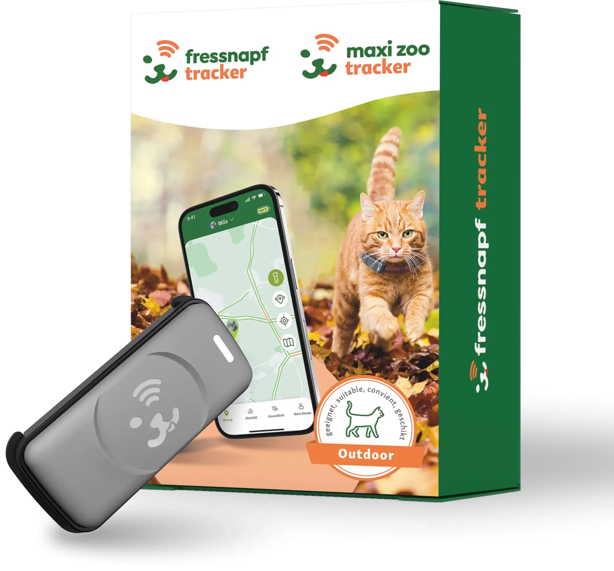 Fressnapf - EAN: 4047777240440 - Mit dem Fressnapf GPS-Tracker für Katzen wissen Sie genau, wo Ihr Liebling gerade ist. 60% der Katzenbesitzer haben ihre Katze bereits einmal vermisst. Mit dem Fressnapf GPS-Tracker für Katzen müssen Sie sich nicht mehr um die Sicherheit Ihres Lieblings sorgen. Denn ab jetzt können Sie Ihre Katze mittels GPS in mehr als 21 Ländern orten. Das Produkt ist mit 35 Gramm federleicht und erfährt durch den zusätzlichen ergonomischen Tragekomfort eine hohe Akzeptanz bei erwachsenen Katzen ab 4kg. Das Material ist wasserdicht und macht jede Erkundungstour mit. Außerdem erhalten Sie nützliche Informationen über die Aktivität und Gesundheit Ihres Vierbeiners. Der Fressnapf GPS-Tracker für Katzen hält dank optimierter Akkuleistung 2 - 3 Tage durch. Die Verwendung wird mit einem Sicherheitshalsband empfohlen. Dieses ist separat erhältlich. GPS-Tracking mit punktgenauem Standort Aktivitäts-Tracking: Erkundungstouren erfassen Gesundheit: Das Wohlergehen im Blick 2 - 3 Tage Akkulaufzeit Einfache Befestigung am Sicherheitshalsband Induktives Laden mit magnetischem Ladepuck und ohne lästiges Einstöpseln Katzenfreundliches Design: Hoher Tragekomfort für erwachsene Katzen ab 4kg aufgrund ergonomischer Form und federleichtem Gewicht Staub- und wasserdicht: Nach IP67 gegen Untertauchen in bis zu einem Meter Tiefe für maximal 30 Minuten geschützt Mehr Informationen zu den Funktionalitäten finden Sie auf unserer ausführlichen Produktseite . Ganz sicher, ganz ohne ... ![]() ![]() Fressnapf GPS Tracker für Katzen - 2. Generation - Ohne ABO - Ortung ohne Entfernungsbegrenzung - Aktivitätserkennung & Gesundheitsfunktion - Katzenfreundliches Design