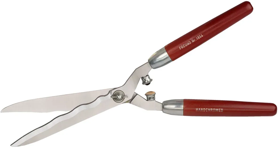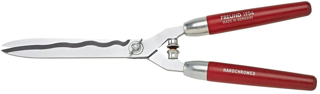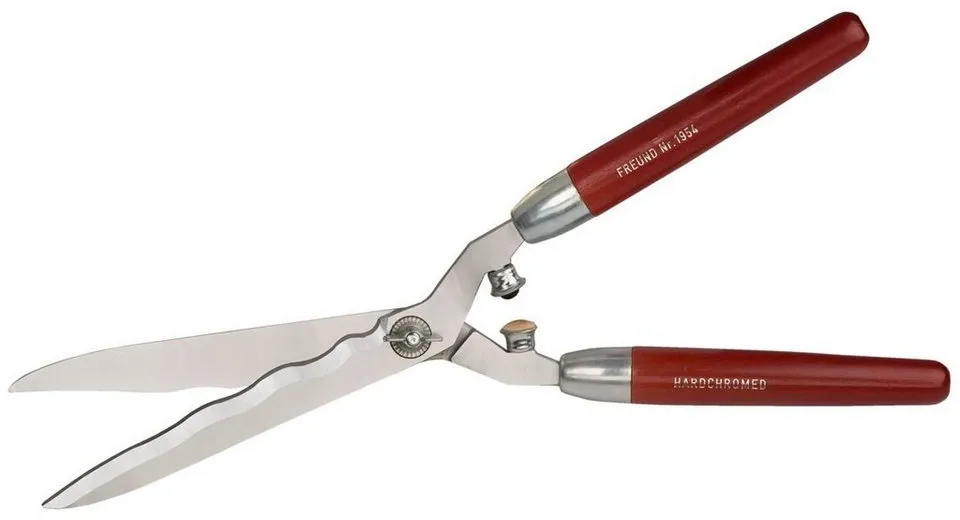 Zustand: Neu - Heckenscheren - Freund Victoria FREUND - 1954 - EAN: 4251310275152 EAN: 4000925202066 EAN: 4251315443334 - Hochwertige Heckenschere mit Wellenschliffschneide und eingeschmiedeter Muttersicherung Durch den Anschlagdämpfer werden die Handgelenke bei der Arbeit geschont Die Blattlänge der Schere beträgt 24 cm Mit hartverchromten Klingen, verchromter Metallzwinge und handlichen Holzgriffen Im Lieferumfang ist eine Heckenschere enthalten - Verkäufer: Tooler - Qualität seit 1977 in Deutschland im amazon.de Marketplace ![]() ![]() Freund Victoria Freund-Victoria - Heckenschere 1954 Traditionsmodell