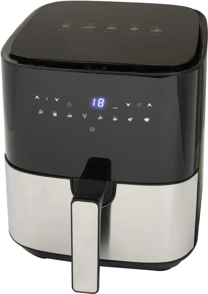 Fritteuse Gesamtsortiment Haushalt Küche Kochen + Zubereiten Küchengeräte Fritteuse Fritteusen - EAN:5901299965511 - Die Esperanza Patate Fritte Luftfritteuse ist die perfekte Lösung für alle, die den Geschmack von frittierten Lebensmitteln auf gesündere Weise geniessen möchten. Sie ermöglicht es, knusprige Pommes, saftiges Hähnchen oder aromatisches Gemüse schnell, bequem und ohne Geschmacksverlust zuzubereiten, ohne Fett zu verwenden. Dank ihrer hohen Leistung und Heissluftzirkulation werden die Gerichte gleichmässig gegart und sind in wenigen Minuten fertig. Das moderne Design des Geräts macht es zu einer grossartigen Ergänzung für jede Küche, und das intuitive Bedienfeld mit 7 voreingestellten Programmen erleichtert die Nutzung. Temperaturkontrolle und ein Timer bieten volle Kontrolle über den Kochprozess, und rutschfeste Füsse sorgen dafür, dass das Gerät fest auf der Arbeitsplatte steht. Dieses funktionale und praktische Gerät wird von jedem in Ihrem Zuhause geliebt werden. Moderne Luftfritteuse für den täglichen Gebrauch. - gefunden von Kelkoo Diese Heißluftfritteuse mit 8 Litern Fassungsvermögen und visueller Anzeige ist perfekt für größere Haushalte, die Wert auf gesunde Zubereitung legen. ![]() 8l Luftofen Haushalt Frittier maschine große Kapazität visuelle Luft fritte use Smart Churra squeira