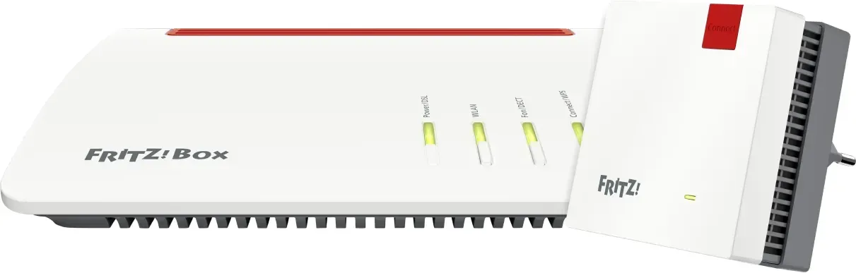 Kategorie: Router - AVM - GTIN:6095605999945 - Verstärke das Signal der AVM FRITZ!Box 7590 AX mit einem FRITZ!Repeater 1200 AX, um in deiner großen Wohnung oder zwei Etagen deines Hauses bequem im Internet zu surfen. Bei der FRITZ!Box handelt es sich um einen Wi-Fi 6-Router, dessen Signal du mit dem Repeater unkompliziert mehr Reichweite verschaffst. Dank der höheren Geschwindigkeit des Repeaters, streamst du so gelegentlich auch ein Video. Weil im Router ein DSL-Modem integriert ist, versorgst du dein Zuhause mit einer stabilen Verbindung zum Internet und einem stabilen, hausinternen Netzwerk über ein und dasselbe Gerät. Mit WiFi-6 schließt bis zu 100 drahtlose Geräte an, ohne dass dein WLAN-Netzwerk langsamer oder instabiler wird. Die FRITZ!Box ist nicht nur ein Router, sondern auch eine komplette Telefonzentrale. Schließe zwei Festnetztelefone an oder verwende die integrierte DECT-Basisstation, um Telefone ohne Kabel zu verbinden. - 375,90 Euro bei coolblue - gefunden von billiger.de Die AVM FRITZ!Box 6850 5G + Repeater 1200 AX ist eine Premium-Lösung für Nutzer, die 5G-Konnektivität und ein erweitertes WLAN benötigen. Tink.de
