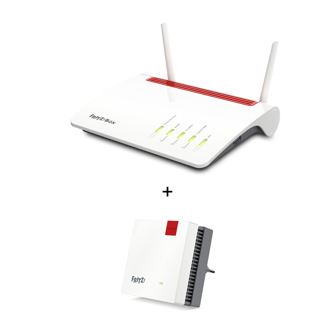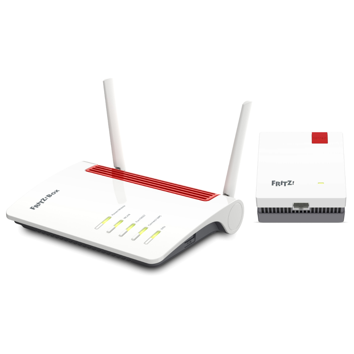 Verfügbarkeit: 1 Werktag - Kategorie: Router - AVM - GTIN:6095605999945 - Verstärke das Signal der AVM FRITZ!Box 7590 AX mit einem FRITZ!Repeater 1200 AX, um in deiner großen Wohnung oder zwei Etagen deines Hauses bequem im Internet zu surfen. Bei der FRITZ!Box handelt es sich um einen Wi-Fi 6-Router, dessen Signal du mit dem Repeater unkompliziert mehr Reichweite verschaffst. Dank der höheren Geschwindigkeit des Repeaters, streamst du so gelegentlich auch ein Video. Weil im Router ein DSL-Modem integriert ist, versorgst du dein Zuhause mit einer stabilen Verbindung zum Internet und einem stabilen, hausinternen Netzwerk über ein und dasselbe Gerät. Mit WiFi-6 schließt bis zu 100 drahtlose Geräte an, ohne dass dein WLAN-Netzwerk langsamer oder instabiler wird. Die FRITZ!Box ist nicht nur ein Router, sondern auch eine komplette Telefonzentrale. Schließe zwei Festnetztelefone an oder verwende die integrierte DECT-Basisstation, um Telefone ohne Kabel zu verbinden. - 293,90 Euro bei coolblue - gefunden von billiger.de Dieses Bundle mit FRITZ!Box 5590 Fiber und Repeater 1200 AX ist ideal für Glasfaser-Anschlüsse und bietet ein leistungsstarkes Wi-Fi 6 Netzwerk. ![]() ![]() FRITZ!Box 5590 Fiber + FRITZ!Repeater 1200 AX Bundle mit WiFi 6 Router und WiFi 6 Repeater