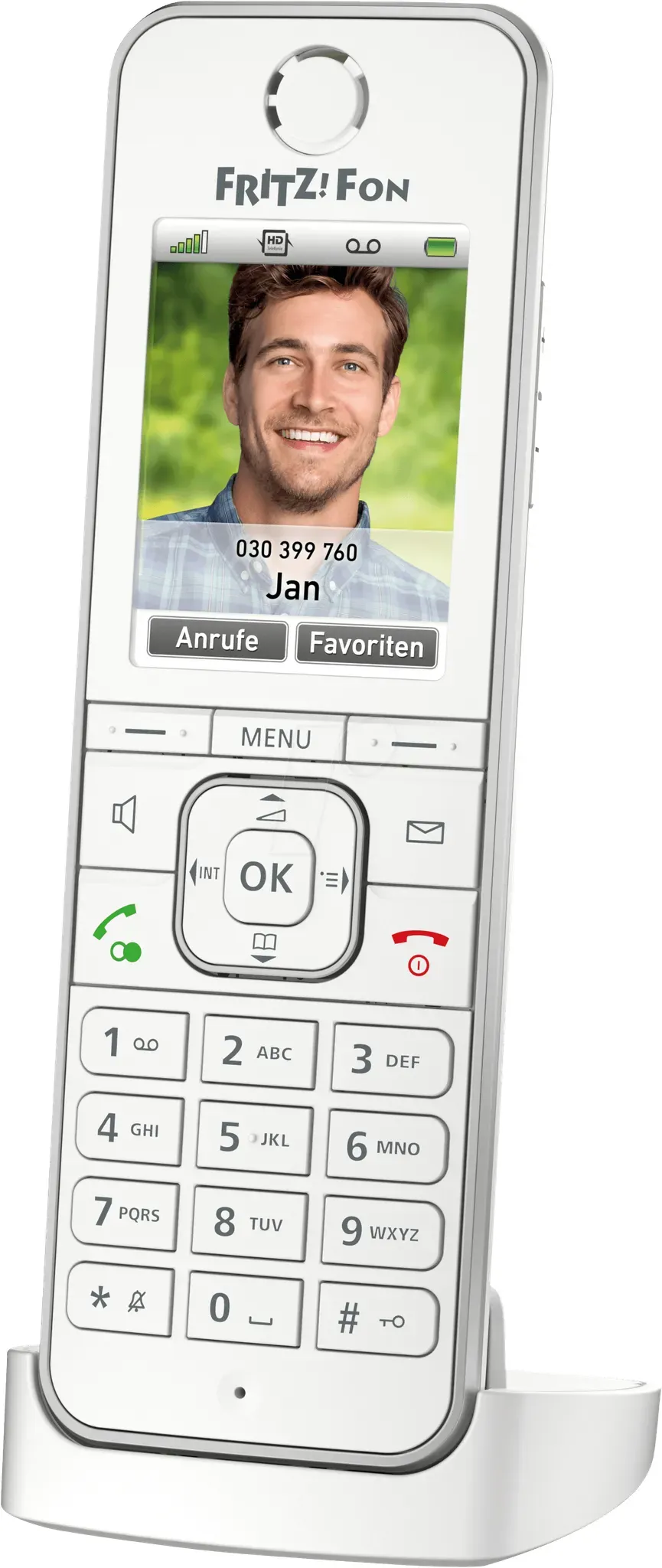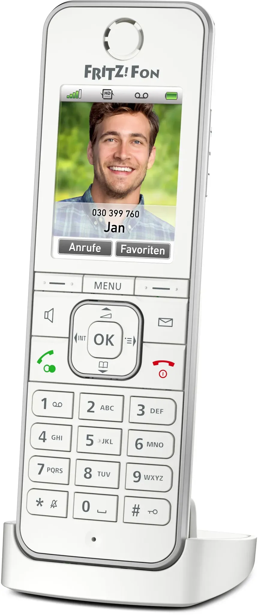 81 Händlerangebote bei billiger.de - Kategorie: Schnurlose Telefone - AVM - Komfort-Schnurlostelefon mit brillianter HD-Telefonie und intuitiver Menüführung für alle FRITZ! Box-Modelle mit DECT-Basisstation übersichtliche Menüs auf hochwertigem Farbdisplay (180 ppi), Telefonbücher für bis zu 300 Einträge, mehrere Anrufbeantworter mit Fernabfrage, bis zu 16 Stunden Gesprächsdauer, bis zu 12 Tage Stand-by Nutzung von Internetdiensten: E-Mails, Webradio, Feeds, Podcasts sowie Live Bild von Webcams, Komfortdienste wie Weckruf, Rufumleitung und Babyfon Steuerung von FRITZ! Box-Funktionen, z. B. WLAN-Schaltung, Smarthome-Anwendungen, Wiedergabefunktion des Mediaservers Lieferumfang: AVM FRITZ!Fon C6 Black, Ladestation mit integriertem Netzteil zum Anschluss an das 230-Volt-Stromnetz, 1 Li-ion Akku-Pack, gedruckte deutschsprachige Kurzanleitung - GTIN:4023125029646 Dieses Angebot ist empfehlenswert, da es das FRITZ!Fon C6 in Weiß zu einem attraktiven Preis bei einem bekannten Händler anbietet. ![]() ![]() AVM FRITZ!Fon C6 DECT-Telefon (Weiß)