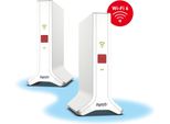 Kategorie: WLAN-Repeater - AVM - GTIN:4023125031083 - FRITZ!Mesh Set 4200 - WLAN-Performance-Paket für große Wohnumgebungen Das FRITZ!Mesh Set funktioniert sowohl an einer FRITZ!Box als auch an einem anderen Router oder direkt am Glasfasermodem/ONT. Unabhängig vom Router erhalten Sie so ein flexibel skalierbares Mesh-System für leistungsstarkes WLAN. Starke Verbindungen - Für bestes WLAN überall Das FRITZ!Mesh Set 4200 eröffnet neue Möglichkeiten für Ihr Heimnetz: Verbinden Sie es mit Ihrem Router oder bestehendem Modem und profitieren Sie von stabilem und schnellem WLAN - mit allen von FRITZ! bekannten Funktionen wie Gastzugang, Zeitschaltung, Kindersicherung sowie automatischen Updates. Profitieren Sie jetzt von einem flexiblen und leistungsfähigen WLAN-System für jedes Zuhause! Das beste WLAN-Erlebnis WLAN, aber intelligent: Im Mesh arbeiten die FRITZ!Repeater zusammen, damit Sie Ihr WLAN genießen können: Die Mesh-Technologie steuert Ihre Geräte intelligent in das optimal geeignete WLAN-Band oder zum nächsten WLAN-Zugangspunkt. Schnell, stabil, zuverlässig: FRITZ! Mesh mit Wi-Fi 6 Immer mehr Geräte wie Smartphones, Tablets, PCs, 4K-Fernseher und Lautsprecher nutzen gleichzeitig das WLAN. Die FRITZ!Repeater aus dem FRITZ!Mesh Set funken mit zwei intelligent genutzten WLAN-Bändern und wählen stets den effizientesten Weg. So erzielen alle Verbindungen optimale Datenraten und realisieren mühelos auch anspruchsvolle WLAN-Szenarien. Genießen Sie jederzeit schnelles, stabiles ... Galaxus.de bietet das 2er-Set für 268.90 Euro an, was es zu einer der günstigsten Optionen macht. ![]() ![]() FRITZ! MESH SET 4200 2-PACK (20003108)