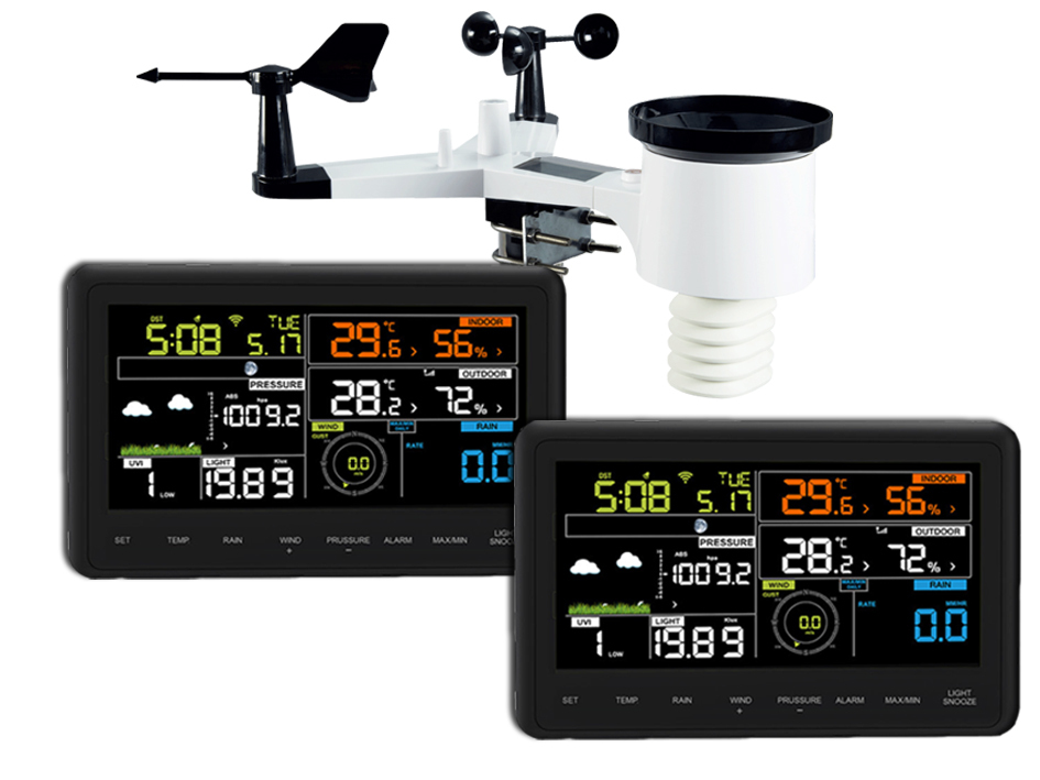 Verfügbarkeit: Auf Lager - Kategorie: Wetterstationen - Froggit - GTIN:0046382351934 - Die WH3000 SE PRO (neueste Version 2025) kombiniert neueste Wettermesstechnik mit modernster Technik. Durch das integrierte WiFi Modul werden Ihre lokalen Wetterdaten global, da Sie Ihre Wetterdaten an Wetterserver wie Weather Underground, Ecowitt, Weathercloud in Echtzeit hochladen können. Dank der Internetverbindung haben Sie somit weltweit einen überblick über Ihre Wetterdaten. Sie benötigen keinen PC, da alle Daten direkt auf dem Vollfarbdisplay angezeigt werden. Neue Einrichtungs App - WS-View, mit der Sie Schritt für Schritt die Wetterstation einrichten können. Einfacher geht es nicht! Die neuartig designte Y-Außeneinheit misst die Außentemperatur, die relative Luftfeuchtigkeit, die Sonneneinstrahlung, den UV-Wert, den Niederschlag sowie die Windgeschwindigkeit & die Windrichtung (Aktualisierte Berechnung alle 16 Sek.) und sendet alle Messdaten an die Displayeinheit. Die Displayeinheit besitzt einen eingebauten Thermo-Hygrometer, mit dem permanent die Innentemperatur, die relative Luftfeuchtigkeit sowie der Luftdruck gemessen wird. Alle gesammelten Daten werden automatisch ausgewertet und geben Ihnen somit eine Wettervorhersage, die Regenrate, den Taupunkt sowie Trends für den Luftdruck, die Innentemperatur und die Luftfeuchtigkeit. Lieferumfang: WH3000 Displayeinheit, Funk Außeneinheit, Windfahne, 5V DC Adapter, Bügelschraube mit Befestigungsklammern, Benutzerhandbuch ... ![]() ![]() froggit WH3000 SE PRO Profi Wifi Internet Funk Wetterstation