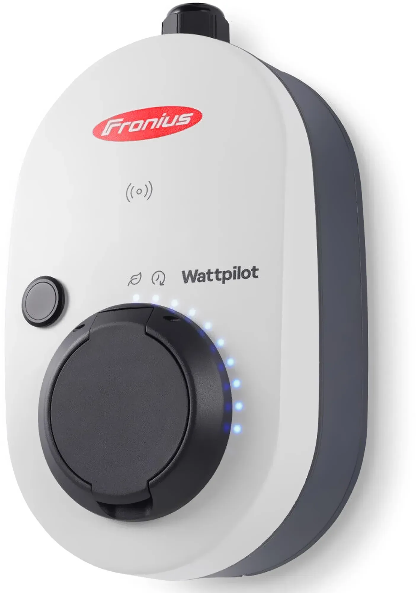 Kategorie: Wallboxen und Ladestationen - Fronius - GTIN:9007947554468 - Fronius Wattpilot Home 22 J 2.0 22 kW Wallbox für intelligentes LadenDer Fronius Wattpilot Home 22 J 2.0 ist eine kompakte Wallbox für dein Zuhause, die PV-überschussladen und flexible Ladeoptionen in einem Gerät vereint. Er lädt dein E-Auto automatisch wahlweise mit eigenem Solarstrom oder aus dem Netz immer angepasst an die verfügbare Energie.Die Bedienung erfolgt am Gerät oder bequem über die Fronius Solar.wattpilot App. Damit legst du Lademodi fest, prüfst den aktuellen Status und bindest die Wallbox über das Solar.web Portal optimal in dein Energiesystem ein. Ideal für smarte E-Mobility mit Eigenstromnutzung. Mehr Fronius Produkte findest du hier.Vorteile im überblickHohe Ladeleistung: Bis zu 22 kW mit automatischer 1-/3-PhasenumschaltungEffizient mit PV-Strom: Start ab 1,38 kW SolarenergieSmart gesteuert: Per App oder direkt am GerätLastmanagement: Dynamische Regelung verhindert NetzüberlastungFronius Integration: Kompatibel mit Solar.webKomfortfunktionen: RFID-Authentifizierung, Scan&Charge und klare App-SteuerungTechnische DatenLadeleistung: 22 kW (1-/3-phasig, dynamisch)Netzanschluss: 5-poliges Kabel (1,8 m) mit NeutralleiterNennspannung: 230 V / 400 VNennfrequenz: 50 HzStrombereich: 6 32 A, einstellbarRegelbereich PV-Laden: 1,38 22 kWMaße: 287 155 109 mmGewicht: 2,3 kgFahrzeuganschluss: Typ-2-BuchseAuthentifizierung: RFID, App (Scan&Charge), OCPPKonnektivität: WLANLieferumfang1 Fronius ... Ein gutes Angebot für eine fest installierte 11kW Wallbox, die eine stabile und dauerhafte Ladelösung bietet. ![]() ![]() Fronius FIX INSTALLIERTE WALLBOX 11KW / FRONIU WATTPILOT HOME 11 J 4,240,404