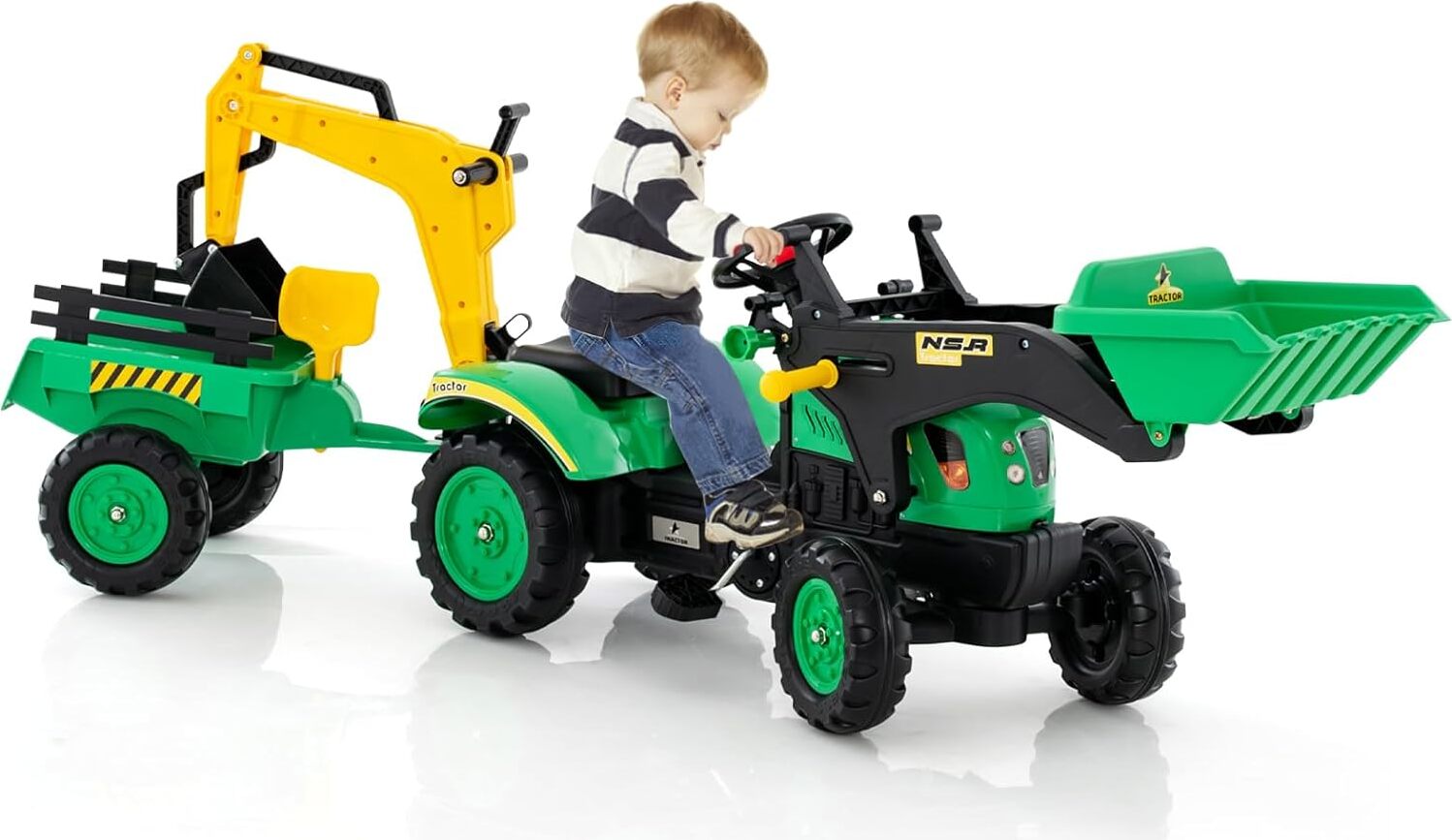 keine Angabe Nur noch 18 auf LagerDREAMADE Trettraktor, Kindertraktor mit Anhänger & Schaufel & Frontlader, Kinderbagger Sitzbagger mit Hupe & Rechen, Tretfahrzeug für Kinder ab 3 Jahren (Gelb)