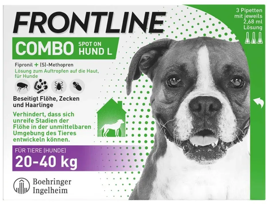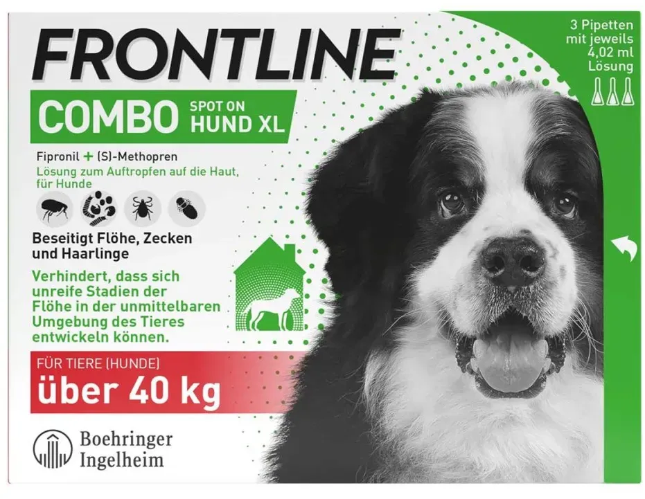 Der angezeigte Preis könnte seit dem letzten Update gestiegen sein - EAN: 3661103009832 - FRONTLINE® SPOT ON - Die Nr. 1 gegen Zecken, Flöhe und Haarlinge bei Hunden*Mit FRONTLINE® SPOT ON schützen Sie Ihren Hund zuverlässig gegen Parasiten wie Zecken, Flöhe und Haarlinge. Optimal auf das Gewicht Ihres Hundes abgestimmt, wird FRONTLINE®... - Zustand: NEW - bei SHOP APOTHEKE - gefunden von Buycentral Ein günstiges Frontline Combo Spot On für sehr große Hunde (über 40 kg) mit 3 Pipetten. ![]() ![]() Boehringer Ingelheim FRONTLINE COMBO Spot On Hund XL >40 kg