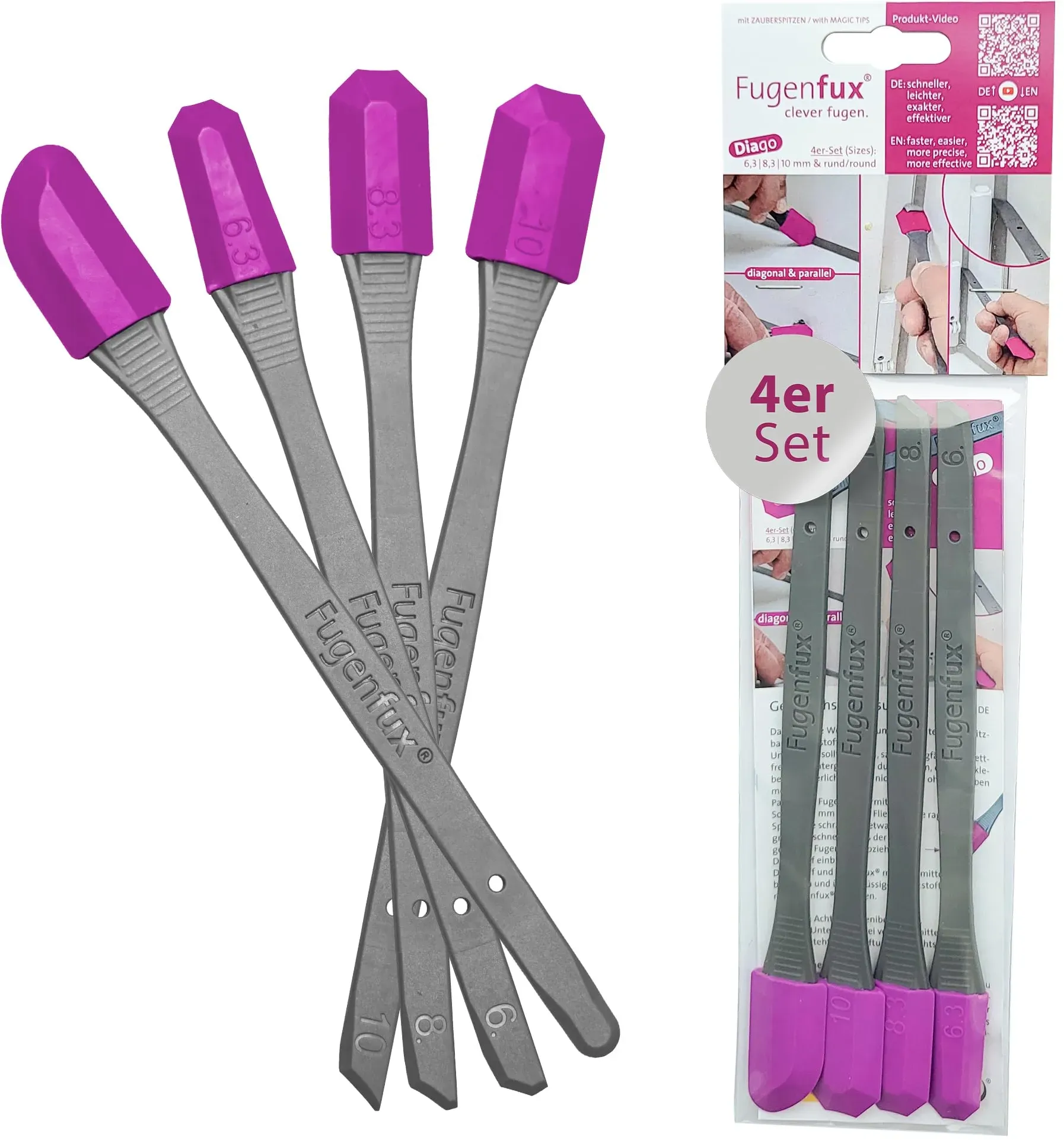 Kategorie: Baumaterial - Otto-Chemie - GTIN:0608866485605 - Glättwerkzeug aus Spezialkunstoff Größen: 6,3 mm, 8,3 mm, 10,0 mm, rund - 20,31 Euro bei Amazon Marketplace Home Improvement - gefunden von billiger.de Dieses 4er-Set ist "Made in Germany" und bietet spezielle Köpfe für diagonales und paralleles Fugen, was es sehr präzise macht. ![]() ![]() FUGENFUX DIAGO 4er Set Fugenglätter | Fugenabzieher für Extrem Enge Stellen | 4 Spezial-Fugenköpfe für diagonales und paralleles Fugen | Made in Germany | Perfekt für Silicon, Acryl & Mehr