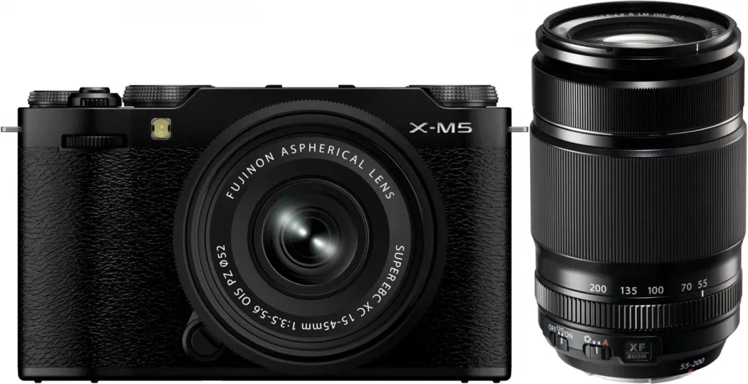 Foto Camcorder Lifestyle Technik - - Die Fujifilm X-M5 bietet eine beeindruckende Auflösung von 26,1 MP mit einem APS-C X-Trans CMOS 4 Sensor, unterstützt durch den leistungsstarken X Prozessor 5. Sie ermöglicht 6.2k Videoaufnahmen und verfügt über ein 7,6 cm LCD-Display mit 1,04 Millionen Pixeln. Zudem stehen 20 Filmsimulationsmodi zur Verfügung. Die Kamera ist mit HDMI Micro, USB-Typ C, sowie Wi-Fi® und Bluetooth® ausgestattet. Jetzt im Set erhältlich inkl. Fujifilm XF 16-80mm Objektiv. Produktbilder zeigen optionales Zubehör und Anwendungsbeispiele. - Versandkostenfrei: true - Anschluss: Bluetooth HDMI USB - - - bei Foto Erhardt - gefunden von shopping24 Ein umfassendes Kit mit zwei Objektiven (XC15-45mm und XF70-300mm) und Cashback-Aktion, ideal für Fotografen, die eine breite Palette an Brennweiten benötigen. ![]() Fujifilm X-M5 Schwarz + XC15-45mm f3.5-5.6 + XF70-300mm f4-5,6 - abzgl. 100,00€ Fujiflm XF Cashback-Aktion
