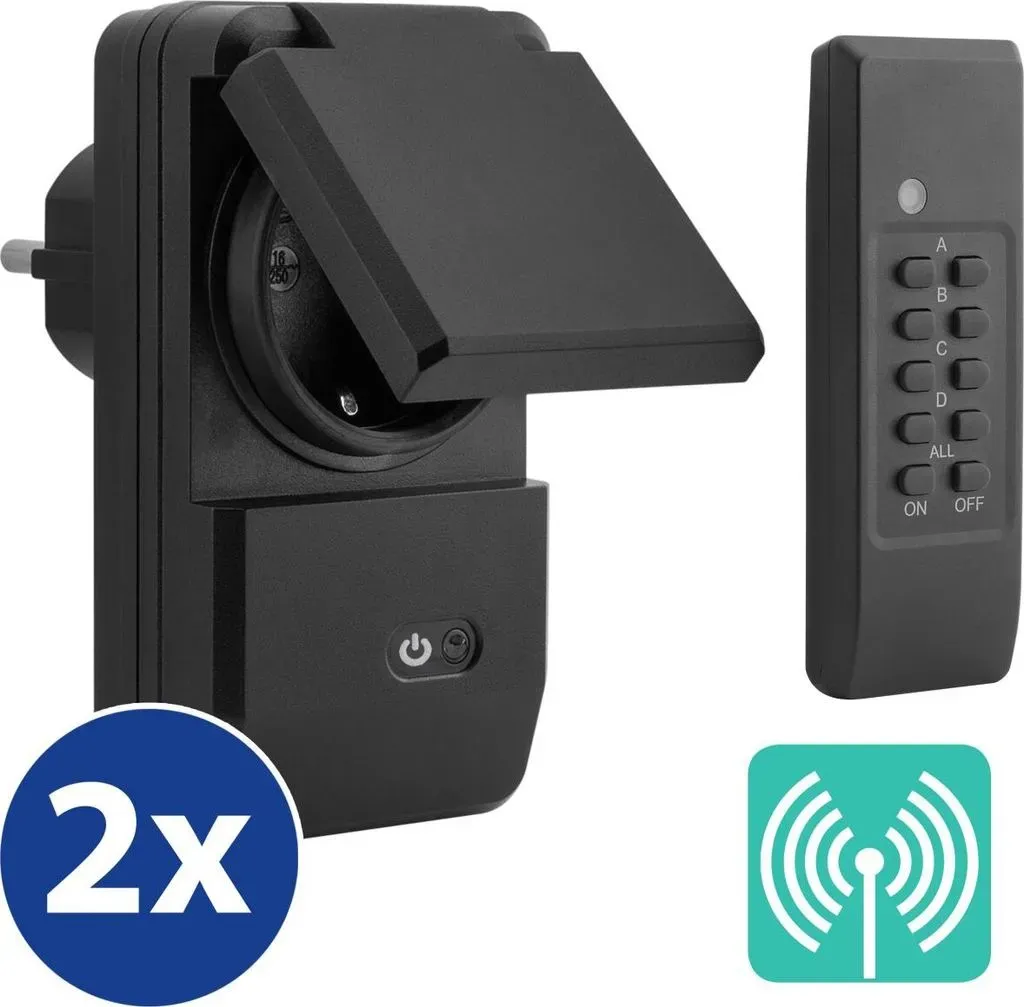 Auf Lager Versand durch AmazonREV Funksteckdosen, 2x Steckdose mit Fernbedienung. Funkschalter bis 30m, 3680W/St. IP44, schwarz