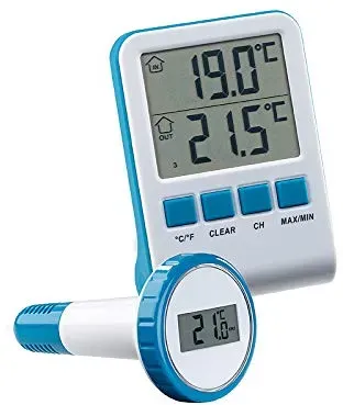 Zustand: Neu - Wetterstationen - TFA Dostmann - 30.3051.02 - EAN: 4009816024633 - Funkthermometer: Kabellose Messung der Innen- und Außentemperatur, Thermometer mit Sensoren für Innen und Außen Uhrzeit: Das Thermometer Funk zeigt auch immer die aktuelle Uhrzeit an Funktionen: Anzeige der Gute- und Tiefstwerte werden als wichtige Informationen zur Raumklimakontrolle angegeben Digitales Thermometer: Das Thermometer mit Funk zeigt wahlweise die Außen- oder Innentemperaturanzeige im Großformat an Lieferumfang: Zum Lieferumfang gehört die Basisstation, ein Aussensensor bzw. Temperatursender (kabellos) und eine Bedienungsanleitung - 10 Händler im amazon.de Marketplace Das FIAP DigiSwim ACTIVE ist ein vielseitiges Thermometer für Pool und Gartenteich, das sowohl Wasser- als auch Lufttemperatur misst. ![]() ![]() FIAP DigiSwim ACTIVE - Thermometer - Funkthermometer - Schwimmthermometer -digital - Wassertemperatur - Lufttemperatur - Bequemes Ablesen der Wassertemperatur - Pool - Gartenteich - Schwimmteich