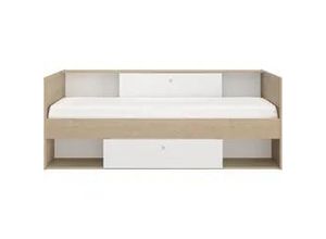Kommoden Wohnen Aufbewahren Ordnen Schränke, Kommoden Vitrinen - - Enthält: 1 Bett für 90x200 cm Bettwäsche, 1 Ablagebrett, 2 Aufbewahrungsfächer mit Trennwand und Schiebetür, 1 Schublade, 2 Fächer. Struktur und Fronten: Spanplatten mit Papierbeschichtung in Naturkastanien- und Weißuni, Kanten in gleicher Ausführung, einige mit einer Dicke von 1mm. Hinterschiebetür und Fächern: Mitteldichte Faserplatten mit weißem Papierüberzug. Schubladenkorpus: Spanplatten mit Polypropylenbeschichtung in Textiloptik auf grauen Kugelführungsschienen. 2 weiße ABS-Knöpfe. Lattenrost und Matratze 90x200 nicht enthalten., Produktdetails: Details Bettgestell: Stauräume, Bettkasten, Ablage mit Schiebetür, Ablageregal, Ausstattung Funktionen: Art Lattenrost: ohne Lattenrost, Anzahl Liegezonen Matratze: 1, Art Topper: ohne Topper, Art Stauraum: Ablageböden, Bettkasten, Anzahl Rückenkissen: 0 Stk., Anzahl Zierkissen: 0 Stk., Anzahl Schubladen: 1 Stk., Anzahl Liegezonen Lattenrost: 1, Anzahl offener Fächer: 3 Stk., Anzahl geschlossener Fächer: 2 Stk., Anzahl Bettkästen: 1 Stk., Maßangaben: Breite Liegefläche: 90 cm, Länge Liegefläche: 200 cm, Breite: 116 cm, Breite Bettgestell: 90 cm, Länge: 204 cm, Höhe: 79 cm, Gewicht: 71 kg, Breite Kopfteil: 116 cm, Höhe Kopfteil: 79 cm, Höhe Bettseite: 43,5 cm, Breite Fußteil: 116 cm, Höhe Fußteil: 79 cm, Belastbarkeit maximal: 100 kg, Hinweis Maßangaben: Alle Angaben sind ca.-Maße., Material: Material Bettgestell: Holzwerkstoff, Material Fußteil: Spanplatte, ... Das Inter Link Funktionsbett Leonie 23 ist für 249,99 Euro ein vielseitiges Sofabett aus Kiefer Massivholz mit integrierter Schublade und Lattenrost. ![]() ![]() Inter Link- Funktionsbett - Kinderbett - Einzelbett - Sofabett - mit Stauraum - Bettschublade - mit Schublade - inklusive Lattenrost - Kiefer Massivholz - Grau Lackiert - Leonie 23-90 x 200 cm