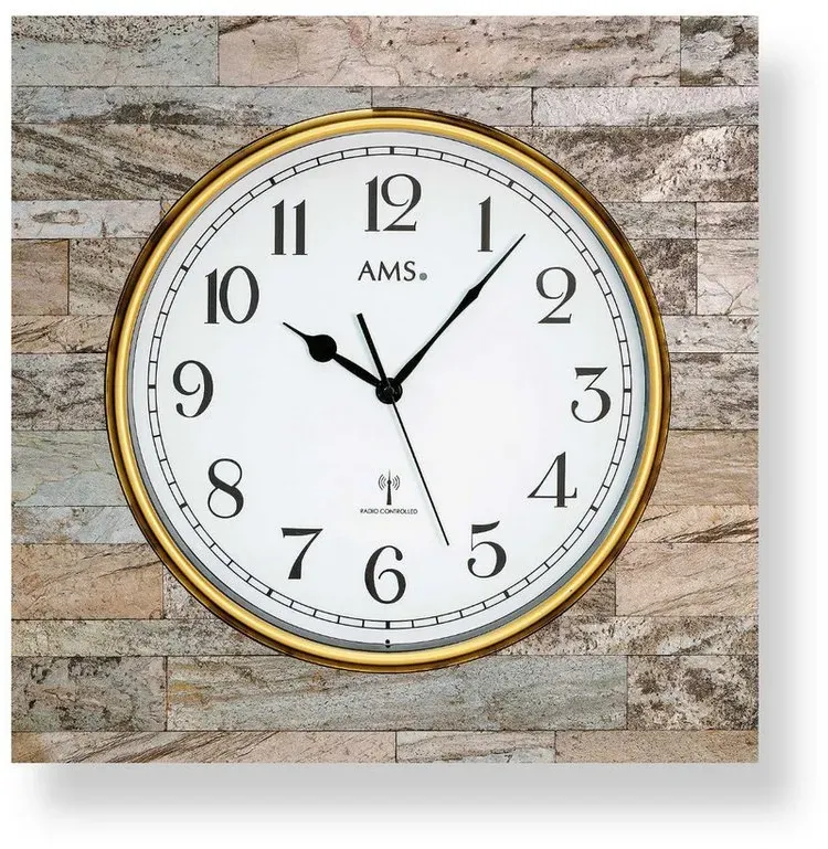 Wanduhren Wohnen Dekoration Raumgestaltung Wohnraumuhren - - Funktionen: Antrieb: Quarz, Anzeige: analog, Empfangstechnologie: Funk, Allgemein: Besondere Merkmale: Made in Germany,Quarz,Holz,Wohnzimmer,Küche,Arbeitszimmer, Flur, Herstellungsland: Made in Germany, Farbe: Farbe Zifferblatt: weiß, Farbbezeichnung: bernsteinfarben, Material: Material Gehäuse: Holz, Holzart Gehäuse: lackierte Holzfaserplatte mitteldicht, Material Zifferblatt: Kunststoff, Glas: Mineralglas, Optik/Stil: Details Gehäuse: Natursteinapplikation, Maßangaben: Durchmesser Gehäuse: 50 cm, Höhe Gehäuse: 5 cm, Stromversorgung: Art Stromversorgung: Batteriebetrieb, Batterie-/Akku-Technologie: 1,5-V-Mignon (LR6/AA), Anzahl Batterien: 1 Stk., WEEE-Reg.-Nr. DE: 52.921.995 - Versandkostenfrei: false - Sale: true - Lieferzeit: 1 Woche - Sofort verfügbar: true - Hersteller-Farbe: bernsteinfarben - - Versand mit Hermes - Zahlungsoptionen: Paypal, Kreditkarte, Rechnung, Lastschrift, Sofortüberweisung, Ratenkauf - bei Baur Versand - gefunden von shopping24 Die AMS Wanduhr Modell 5567 ist eine klassische Funkwanduhr, die durch ihr zeitloses Design überzeugt. ![]() ![]()