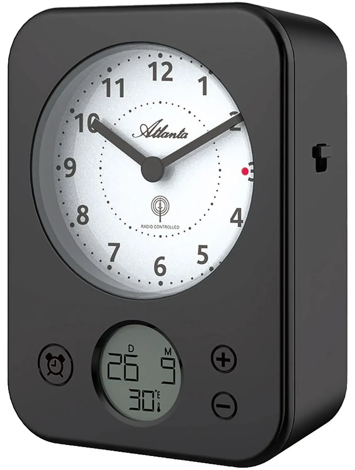 Verfügbarkeit: Auf Lager - Kategorie: Wecker - Atlanta - GTIN:4026934184872 - Funkwecker mit Analog- und Digitalanzeige Präzise Einstellung der Alarmzeit möglich Zifferblattbeleuchtung, Repetition (Snooze), Seitlicher Alarmschalter, Weckstandsanzeige (AN = roter Punkt) im Zifferblatt Maße: ca. 8 x 11 cm - 29,99 Euro bei Amazon Marketplace Home - gefunden von billiger.de Dieser Atlanta Funkwecker ist mit 38,90 Euro ein tickfreies Modell mit Licht, Snooze und Leuchtzeigern. ![]() ![]() Atlanta Funkwecker ohne Ticken mit Licht Snooze Leuchtzeiger Analog - 1856 (Silber)