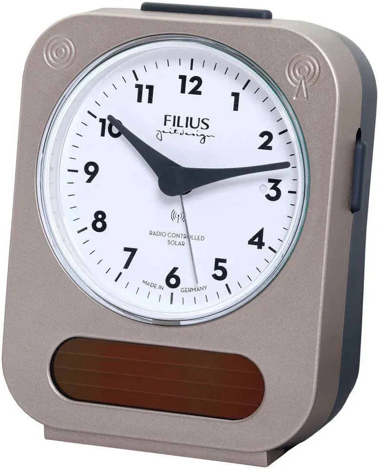 8 Händlerangebote bei billiger.de - Kategorie: Wecker - Filius - Made in Germany, Funkwecker mit analoger Zeitanzeige, lautloses UTS-Funkwerk mit Solarbetrieb, kein Batteriewechsel erforderlich, Empfang des DCF77-Zeitsignals, außerhalb der Reichweite dieses Funksignals quarzgenauer Gang, ansteigendes Wecksignal, Nachweckautomatik (Snooze), weißes Zifferblatt, schwarze Zeiger, dezente blaue Rundumbeleuchtung, schwarzes Kunststoffgehäuse mit bronzefarbener Front, Größe 12,5 x 9,5 x 4,5 cm, mit Solarzelle und Akku, 1800 mAh 1.5 V - GTIN:4045346111429 ![]() ![]() Filius 0543-14 Funk-Solar Wecker
