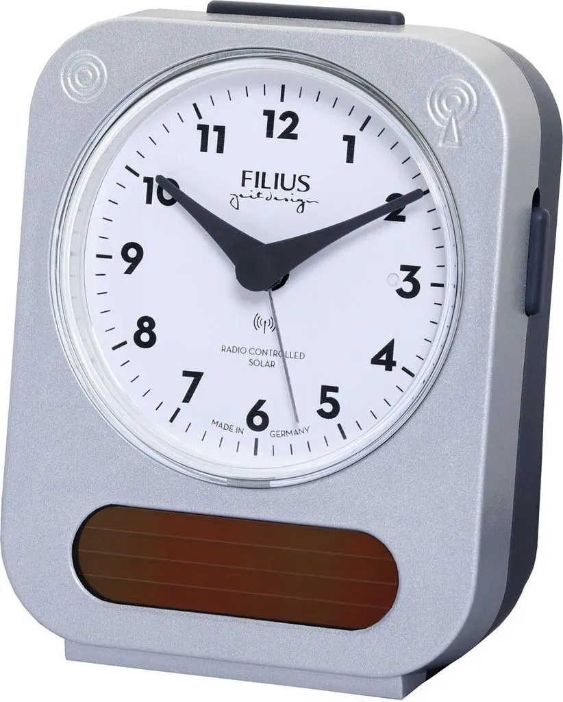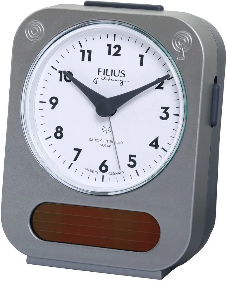 9 Händlerangebote bei billiger.de - Kategorie: Wecker - FILIUS ZEITDESIGN - Made in Germany, Funkwecker mit analoger Zeitanzeige, lautloses solarbetriebenes UTS-Funkwerk, kein Batteriewechsel erforderlich, Empfang des DCF77-Zeitsignals, außerhalb der Reichweite dieses Funksignals quarzgenauer Gang, ansteigendes Wecksignal, Nachweckautomatik (Snooze), deutliches weißes Zifferblatt, schwarze Zeiger, dezente blaue Rundumbeleuchtung, schwarzes Kunststoffgehäuse mit silbergrauer Front, Größe 12,5 x 9,5 x 4,5 cm, mit Solarzelle und Akku, 1800 mAh 1.5 V - GTIN:4045346111436 ![]() ![]() Filius 0543-18 Funk-Solar-Wecker