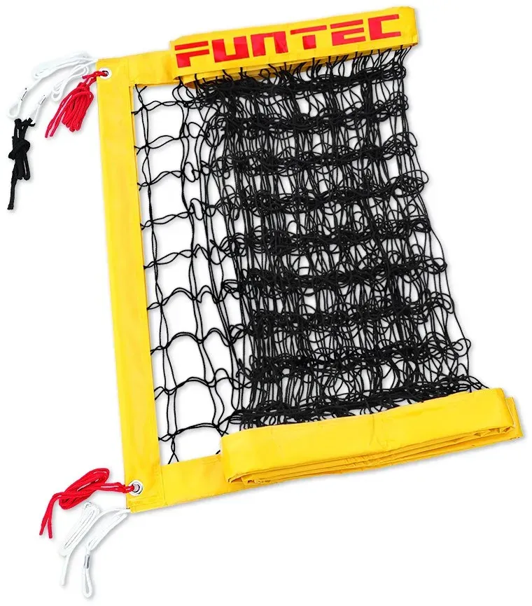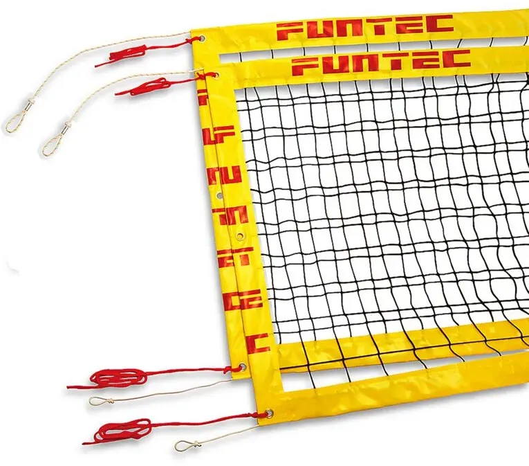Funtec - EAN: 4260059373098 - Zur Installation auf allen gängigen Netzpfostensystemen, Geeignet für Außenplätze und Hallensport, Mit umlaufender Netzkante aus gelbem PVC-Band - bei decathlon.de - aus Yadore Produktdaten ![]() ![]() Funtec Beachvolleyballnetz Pro Beach BLACKS 8,5 m - Gelb