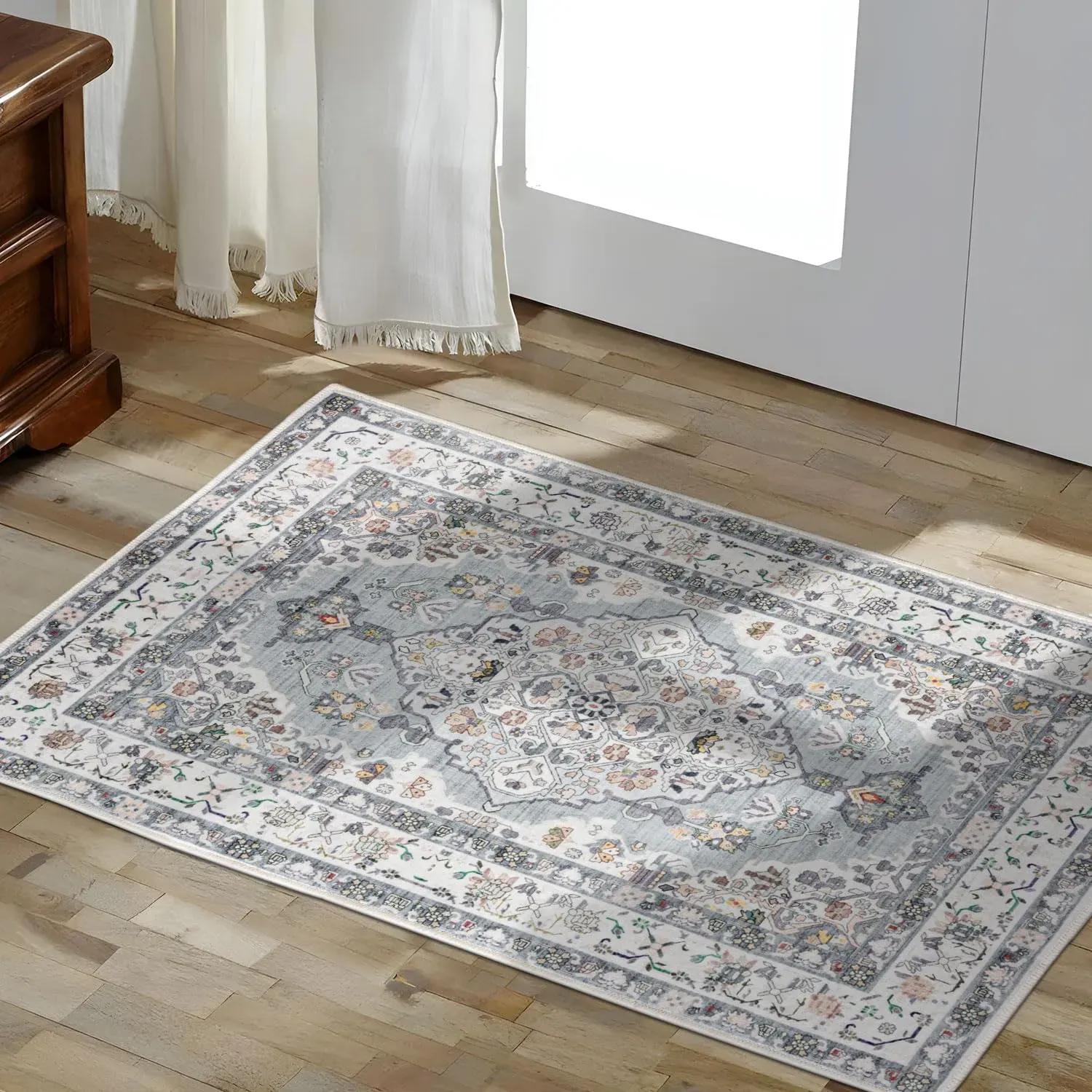 Auf Lager Versand durch AmazonTALETA Fußmatte innen waschbar, Fussmatte dünn, Kleiner Vintage Eingangsteppich, Bettvorleger rutschfest für Ecke, Küche - hellblau, 50 x 80 cm