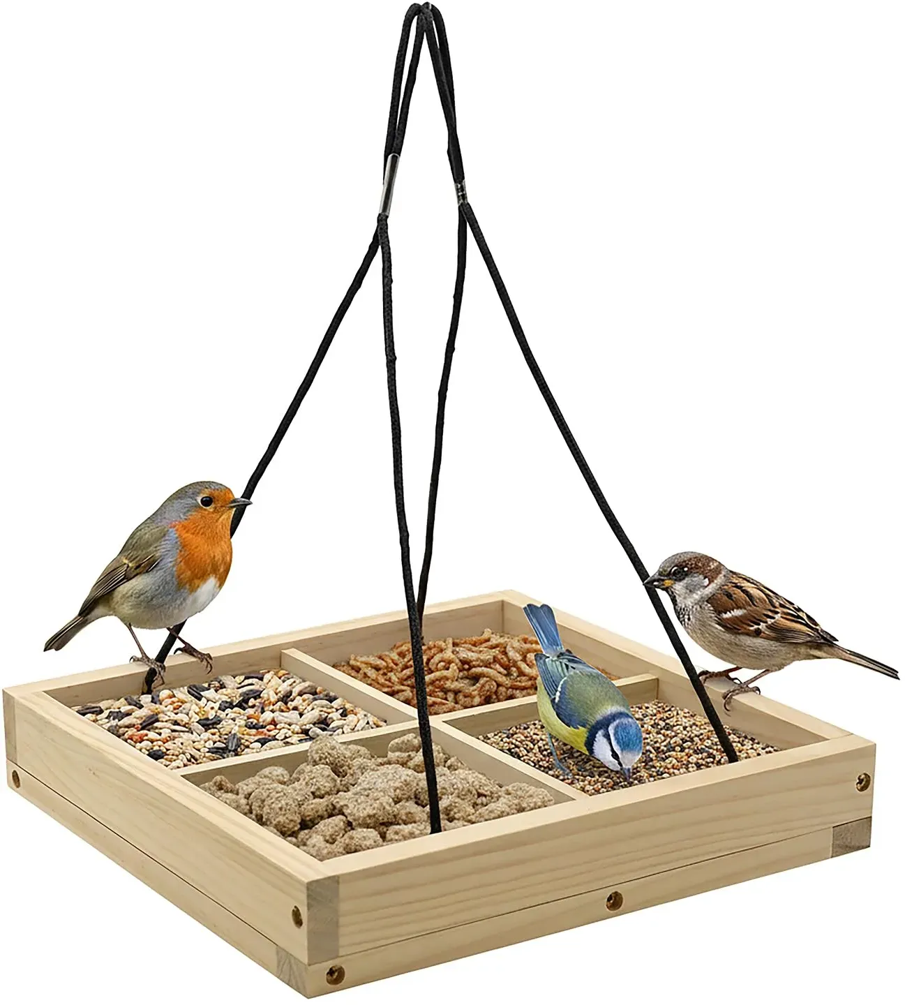 Verfügbarkeit: Auf Lager - Kategorie: Vogelhäuser - Zeqeey - Der hölzerne Vogelfutterspender besteht aus einem Holzrahmen und einem Netz. Geeignet zum Aufhängen im Freien oder im Garten, um Wildvögel zu füttern. Größe: 30 cm x 30 cm x 5 cm. Der hängende Futtertablett Holzrahmen ist langlebig und stabil. Er erleichtert den Vögeln die Landung und ermöglicht das Fressen aus allen Richtungen. Er wird verwendet, um verschiedene Wildvögel anzulocken. Der Boden der Wildvogelfutterplattform besteht aus einem mit Kunststoff beschichteten Netz. Der Durchmesser des Netzes beträgt etwa 1 bis 2 mm, was nicht nur das Herabfallen von Vogelsamen verhindert und Verschwendung vermeidet, sondern auch schnelles Abfließen von Wasser ermöglicht. Dieses Futtertablett mit großer Kapazität kann bis zu 2,5 Liter Vogelfutter-Mischung wie Weizen, Erdnüsse, Sonnenblumenkerne und Mais aufnehmen. Die beiden Mittelteile sind abnehmbar und ermöglichen die Trennung von vier verschiedenen Samen. Das einfache Design ermöglicht es Wildvögeln, sich leicht an das Futtertablett zu gewöhnen, insbesondere kleinen Vögeln wie Rotkehlchen und Spatzen. - 7,99 Euro bei Amazon Marketplace Lawn & Garden - gefunden von billiger.de Dieses 2er Set spiralförmiger Meisenknödel-Halter aus Zinkstahl ist praktisch und bietet Platz für mehrere Knödel. ![]() ![]() bellissa - Vogelfutterspender Meisenknödel-Halter Zinkstahl 2er Set - Hochwertiger Futterspender spiralförmig zum Aufhängen für Futterknödel - Futterstation Vogelfutter für Meisen & andere Vögel