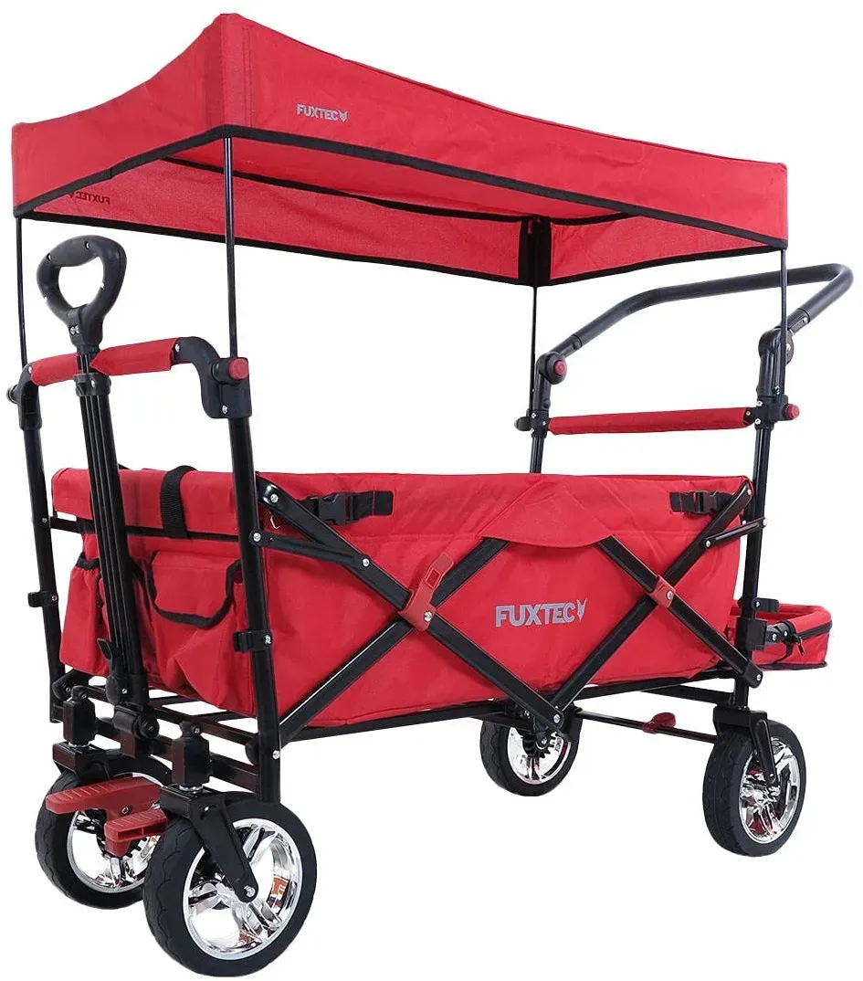 ![]() ![]() Bollerwagen FX-CT800 mit UV-geschütztem Sonnendach,Schiebegriff & Innenraumverlängerung Rot - Fuxtec