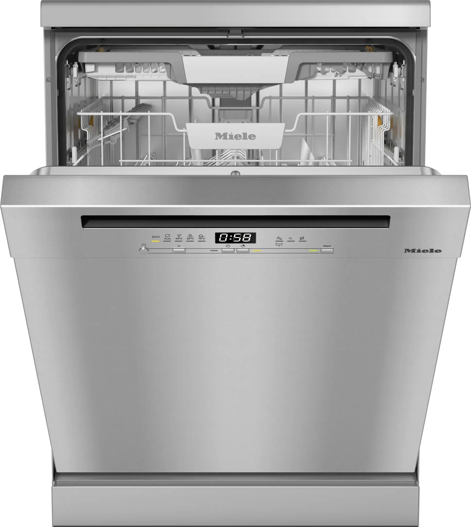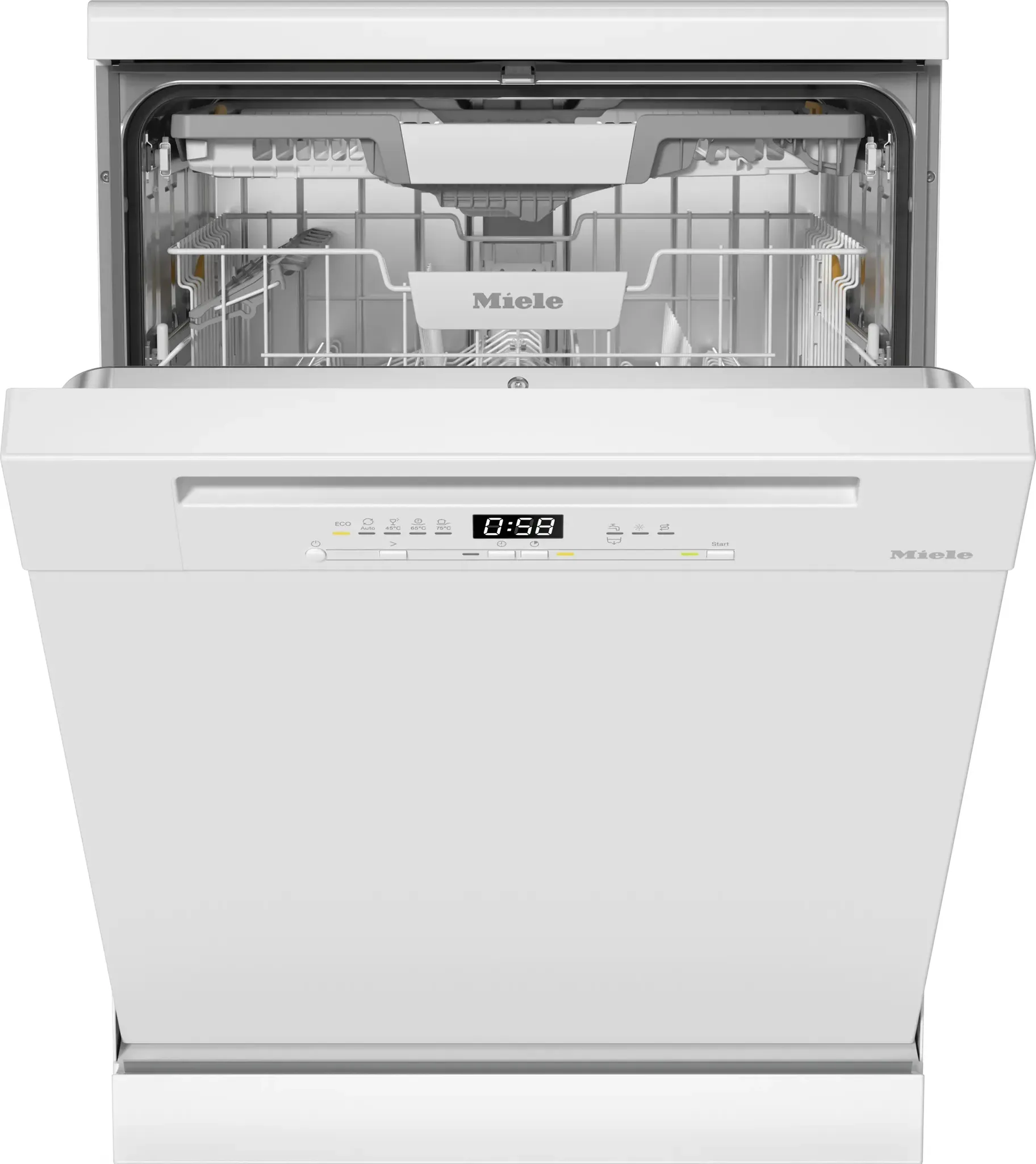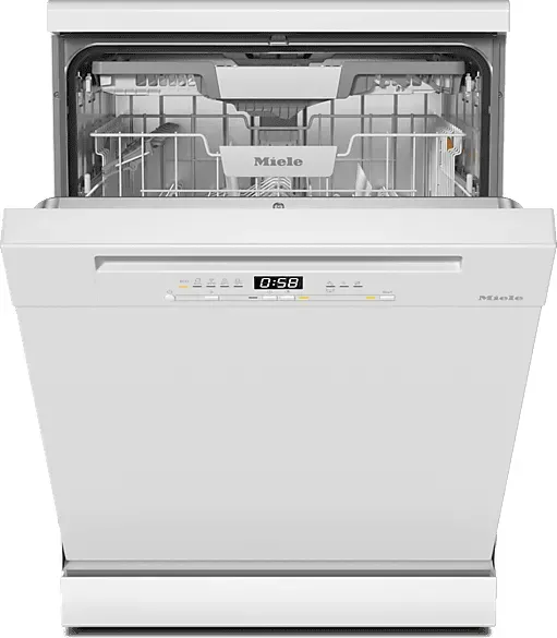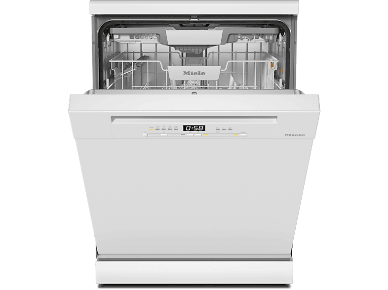 Miele - EAN: 4002516903604 - Miele G 5811 SC Active Plus - Stand-Geschirrspüler, 14 Maßgedecke, Weiß Highlights: - AutoOpen-Trocknung - Alles trocken: Am Ende des Spülprogramms öffnet sich die Tür des Geschirrspülers automatisch. - QuickPowerWash - Kurzprogramm: Beste Reinigungsergebnisse für normal verschmutztes Geschirr in 58 Minuten. - FlexAssist Markierungen - Optimale visuelle Unterstützung: Farbige Kennzeichnung der flexiblen Elemente zur individuellen Korbgestaltung. - Warmwasseranschluss - Bis zu 35 % Stromersparnis: Jeder Miele Geschirrspüler verfügt über einen Warmwasseranschluss bis 60 C. - Halbe Beladung - Weniger Geschirr, weniger Verbrauch: Die automatische Beladungserkennung passt den Wasserverbrauch an. - Brilliant GlassCare - Behutsam und werthaltig: Mit Brilliant GlassCare werden Ihre Gläser schonend gepflegt. - ComfortClose - Praktisch: Die Tür lässt sich besonders leicht öffnen und schließen und bleibt in der gewünschten Position stehen. - EcoPower-Technologie - Spart Wasser und Energie: Effiziente Ressourcenschonung durch clever gestalteten Wasserzufluss. - 3D-MultiFlex-Schublade - Entspannt einräumen: Durch raffinierte Verstellmöglichkeiten platzieren Sie auch kleine Geschirrteile passend. - Frischwasserspüler - Minimaler Verbrauch bei besten Ergebnissen: Im Programm Automatic schon ab 6 Liter Wasserverbrauch. - Waterproof-System (WPS) - Doppelt hält besser: Bei Leckagen stoppt ein zweites Magnetventil den Wasserzulauf direkt am Wasserhahn. - bei ... ![]() ![]() MIELE G 5811 SC Active Plus Geschirrspüler (Standgerät, 598 mm breit, 43 dB (A), A)
