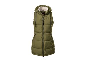 3 Händlerangebote bei billiger.de - Kategorie: Jacken & Mäntel - G.I.G.A. DX - Mit der langen Funktionsweste in Daunenoptik von G.i.g.a. DX liegen Sie voll im Trend. Die Steppweste ist wasserabweisend, winddicht und gleichzeitig atmungsaktiv. Die Kapuze und der bequeme Strickkragen schützen zusätzlich vor Kälte und Wind. Die Weite vom Saum kann anhand eines Kordelzuges reguliert werden. Zwei Reißverschlusstaschen und eine Innentasche bieten Stauraum für Handy, Schlüssel und Co. Der 2-Wege-Reißverschluss ist mit einem praktischen Kinnschutz versehen, der ein Einklemmen der Haut verhindert. killtec liegt es besonders am Herzen, die Kollektionen nachhaltiger und zukunftsfähiger zu machen. So setzt killtec verstärkt auf verantwortungsbewusstere Herstellungsverfahren. Diese Weste wurde daher mit fluorfreien Mitteln imprägniert und teilweise aus recyceltem Material hergestellt. Damen Funktionsweste in Daunenoptik mit Kapuze wasserabweisend, (8.000 mm) und winddicht langer Schnitt, Saum regulierbar, praktische Taschen 2-Wege-Reißvschluss mit Kinnschutz PFAs-freie Impräg... - GTIN:4066224541657 Diese Steppweste ist eine umweltfreundliche Wahl, da sie aus recyceltem Polyester gefertigt ist. ![]() Steppweste 'GW 30 WMN QLTD VST', Damen, Gr. 38, grün (olivgrün), Oberstoff: 100% Polyester (recycelt), Futter: 100% Polyester, Wattierung: 100% Polyester, G.I.G.A. DX BY KILLTEC, Westen Steppweste, Wasserabweisende, winddichte Weste mit Kapuze und Kinnschutz