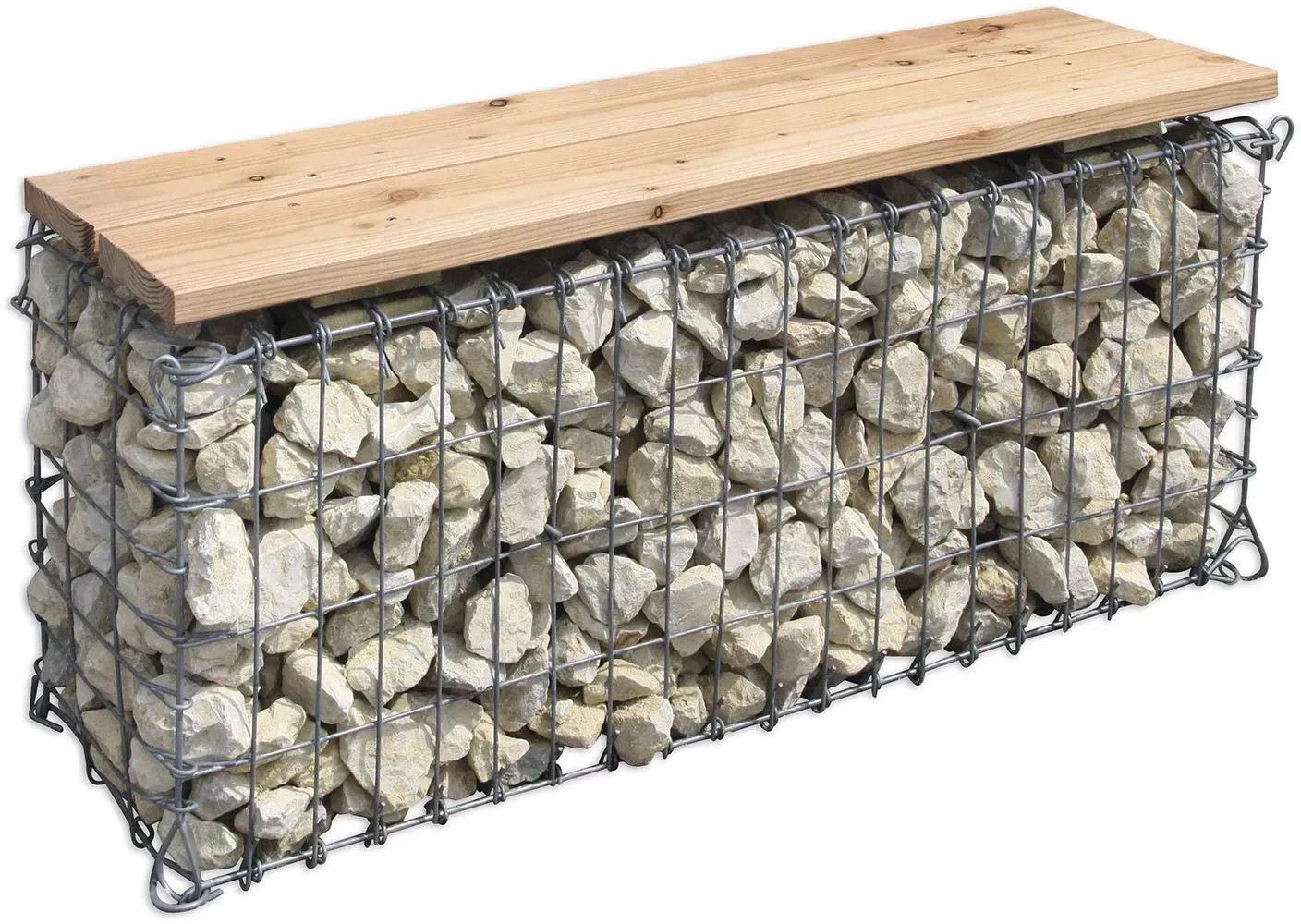 Kategorie: Gabionen - Bellissa - GTIN:4042897971564 - Die hochwertige Gartenbank-Gabione Calma von Bellissa mit gemütlicher Lehne ist ein beliebter Treffpunkt im Garten sowie in Parkanlagen. Auch in Verwendung als Randbegrenzung der Terrasse ist unsere Gabionen-Bank ein optischer Blickfang. Selbst im Winter, wenn alle Gartenmöbel eingelagert werden, lädt die hochwertige und langlebige Sitzauflage und Lehne aus Douglasienholz zum Verweilen ein. Der Umwelt zu Liebe ist die stabile Gabionenbank Calma mit forstlich angebautem und hochwertig verarbeitetem Douglasienholz aus heimischen Wäldern der Region Bodensee, Oberschwaben und Allgäu belegt. Die Sitzauflage ist äußerst witterungsbeständig und langlebig. Pflegehinweis: Regelmäßiges ölen hilft, die Farbe zu erhalten. Die Gitter sind Aluminium-Zink verzinkt und ren eine extrem hohe Langlebigkeit. Die Gabione hat eine Maschenweite von 5 x 10 cm und benötigt zum Befüllen 390 kg Steine mit einer Körnung von mehr als 50 mm. Hinweis : Es handelt sich hierbei um einen vormontierten Bausatz ohne Steinfüllung. Holz ist ein Naturprodukt! Risse, äste und farbliche Unregelmäßigkeiten sind natürlich und unterscheiden diese Produkte von künstlich hergestellten. - 459,99 Euro bei BAUHAUS - gefunden von billiger.de Diese vidaXL Gartenbank aus imprägniertem Kiefernholz ist eine der teureren Optionen und bietet eine sehr großzügige Sitzfläche. ![]() ![]()