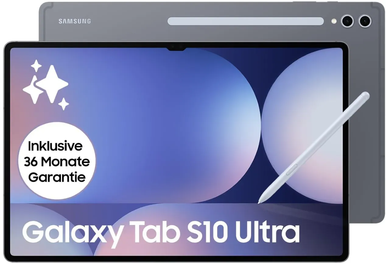 46 Händlerangebote bei billiger.de - Kategorie: Tablet PCs - Samsung - Für eine sorgenfreie Nutzung: Kostenlose verlängerung auf - gültig für Kunden, die ihren Wohnsitz in Deutschland haben17 Das erste Samsung Tablet mit AI-Unterstützung von Anfang an: Die Galaxy Tab S10-Serie ist ab Werk mit Galaxy AI ausgestattet, Jedes Detail fördert deine Kreativität - vom überarbeiteten S Pen bis hin zur faszinierenden Kameraeinfassung Groß oder sehr groß: Samsung Tablet mit Dynamic AMOLED 2X Display, Antireflexionstechnologie und Vision Booster für passende Sicht bei schwierigen Lichtverhältnissen2 3 6 Sei allem gewachsen: Fliege geradezu durch Games und genieße müheloses Multitasking dank einem schnellen Prozessor und einem großen Vapor Chamber-Kühlsystem, Der robuste Rahmen aus Armor Aluminum bietet eine lange Lebensdauer4 7 8 Ein Akku, der mit dir mithalten kann: Genieße stundenlangen Spiel- und Streaming-Spaß und arbeite hart dank einem Akku, der dich nicht ausbremst, Mit der Schnellladefunktion ist dein Akku schnell wieder aufgeladen9 10 11 Die AI-Taste wird dich begeistern: Entfessle die Power von AI direkt über deine Tastatur - für einfachen Zugriff auf den KI-gestützten Assistenten12 13 14 - GTIN:8806095596914 Dieses Angebot von otto-office.com für 865.34 Euro ist ein solides Wi-Fi-Modell mit 256GB Speicher in Grau, das eine zuverlässige Option darstellt. ![]() Samsung Tablet-PC Galaxy Tab S10 Ultra 256 GB Wi-Fi grau, 32.64x20.86x0.54 cm